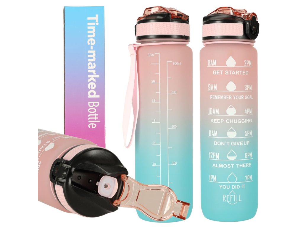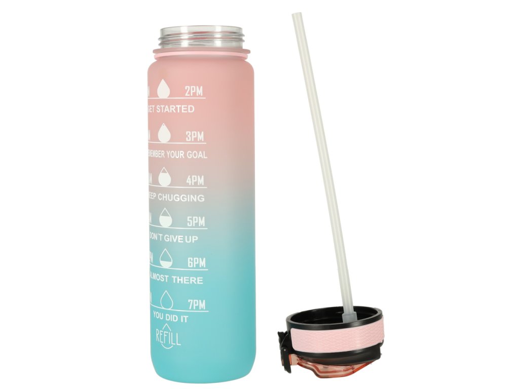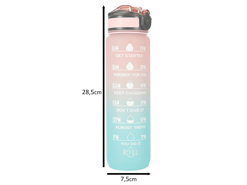 Láhev na vodu s odměrkou 1L růžovo-modrá