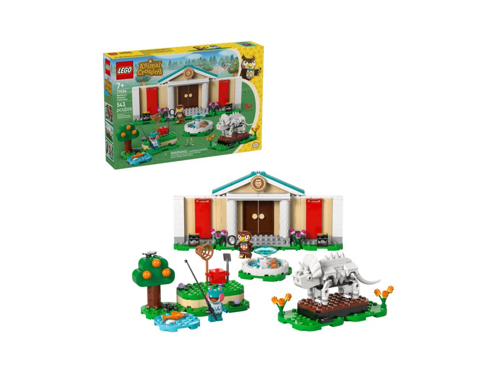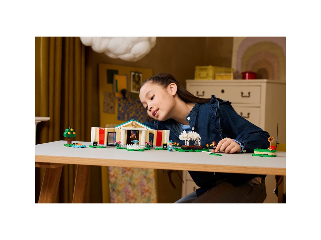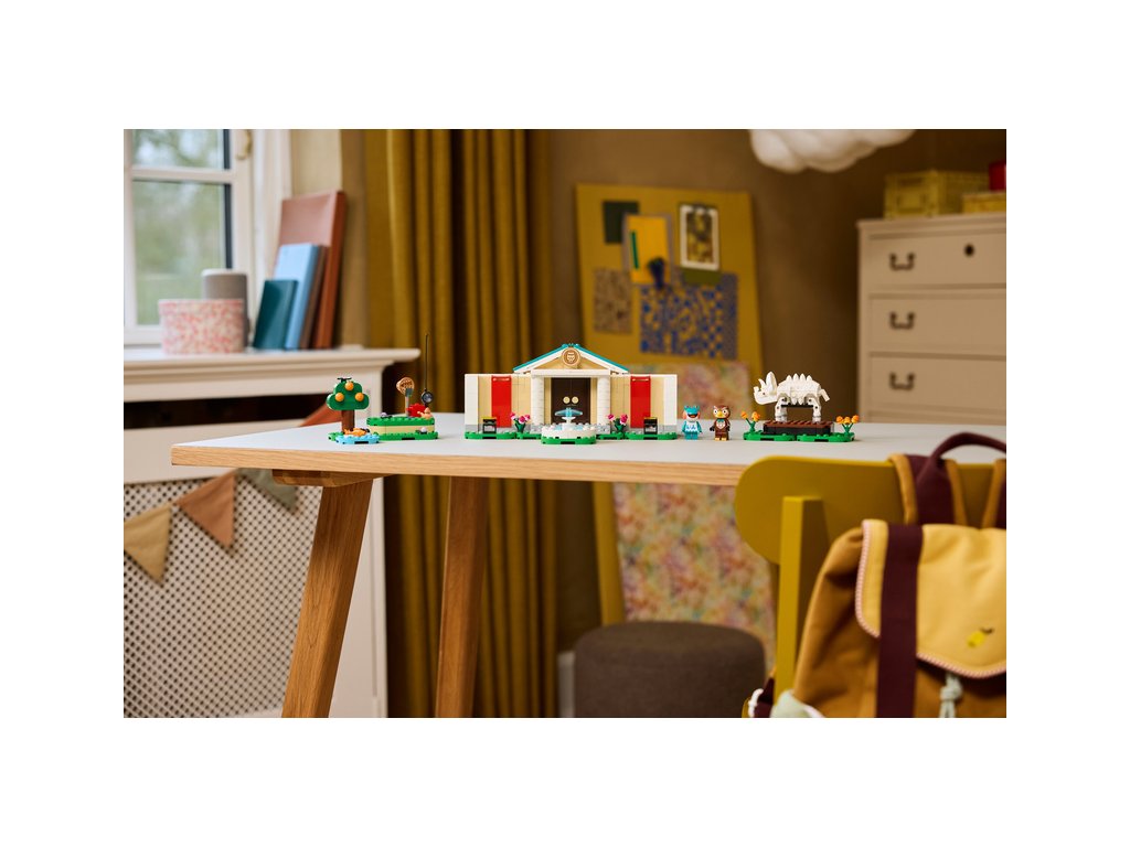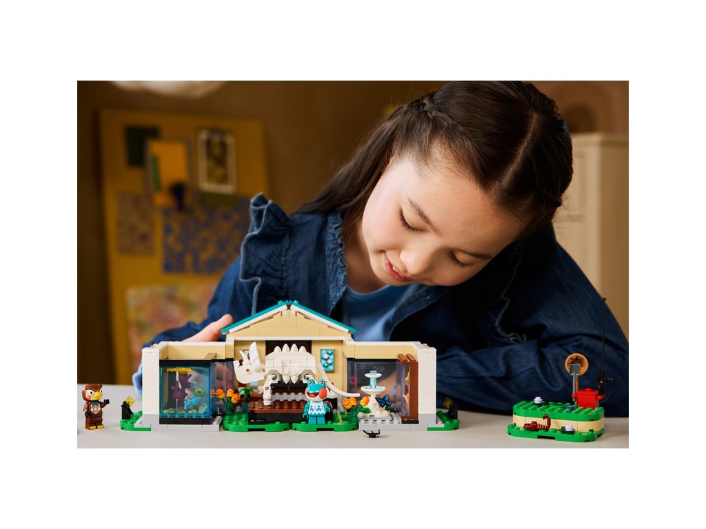 Tato stavebnice LEGO® je replikou muzea ze série videoher Animal Crossing. Děti umístí do výstavních prostor své nálezy. Můžou vykopat chybějící ocasní kosti triceratopse pomocí rýče, chytat ryby do akvária a chytat motýly a děsivé plazy do sítě. Díky nastavitelným sklopným stěnám a přeskupitelným prvkům lze stavebnici přestavit pro ještě více herních možností. Součástí stavebnice je také fontána a kavárna The Roost, kde si děti odpočinou s minifigurkami Blatherse a Lily, než se vydají na další dobrodružství při objevování přírody. Malí stavitelé si také můžou užít digitální stavitelskou zábavu s aplikací LEGO Builder, ve které lze přibližovat a otáčet modely ve 3D. Stavebnice obsahuje 543 dílků.