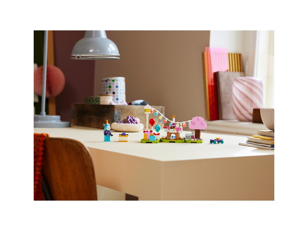 Tvořivé děti od 6 let si se stavebnicí LEGO® Animal Crossing™ Julianova oslava narozenin užijí hodiny vyprávění příběhů plné možností.