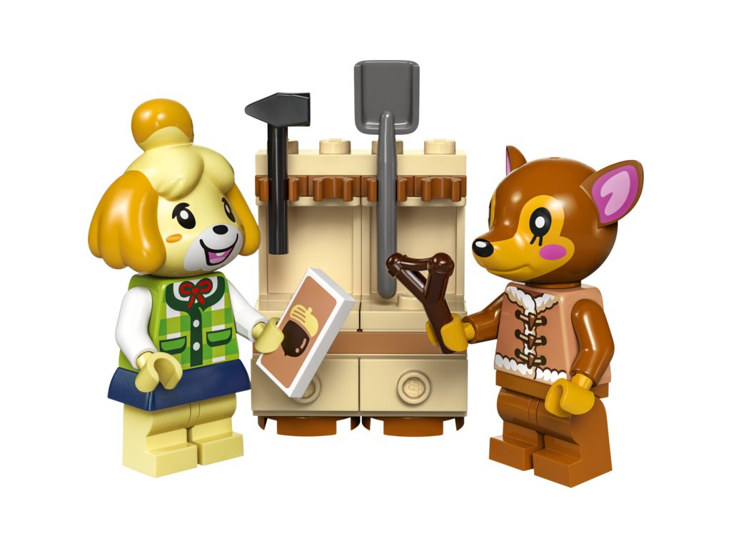 - Spousta inspirativních prvků – Součástí této stavebnice z řady LEGO® Animal Crossing™ jsou 2 minifigurky, Isabelle a Fauna, a řada známých prvků, jako je pracovní stůl nebo dárek připevněný k létajícímu balónku