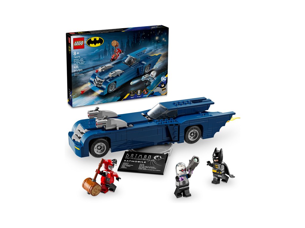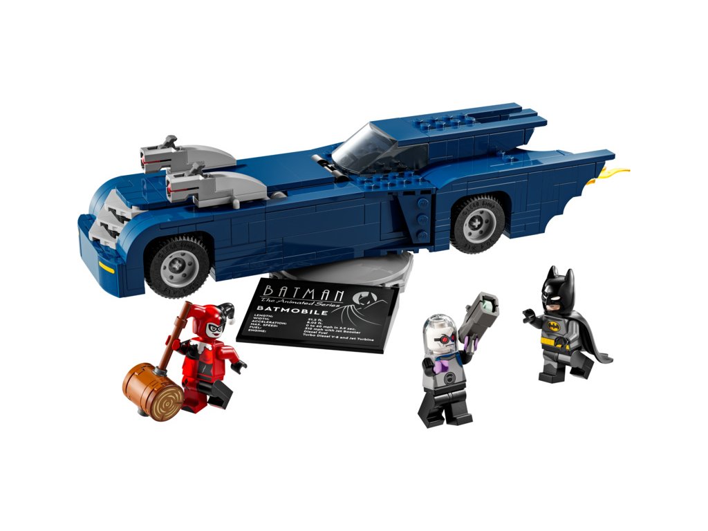 - Figurky inspirované seriálem Batman™: The AnimatedSeries™ – Tato stavebnice s Batmanem pro děti obsahuje sestavitelný Batmobil s minifigurkou Batmana, Harley Quinn™ a Mr. Freeze™