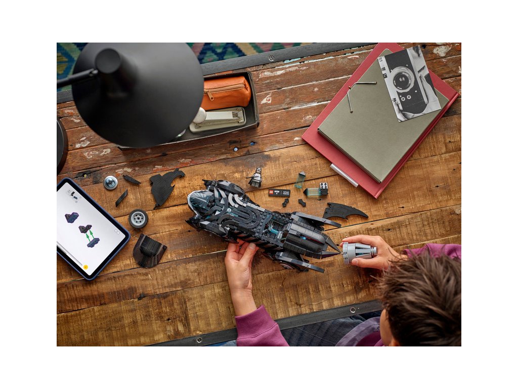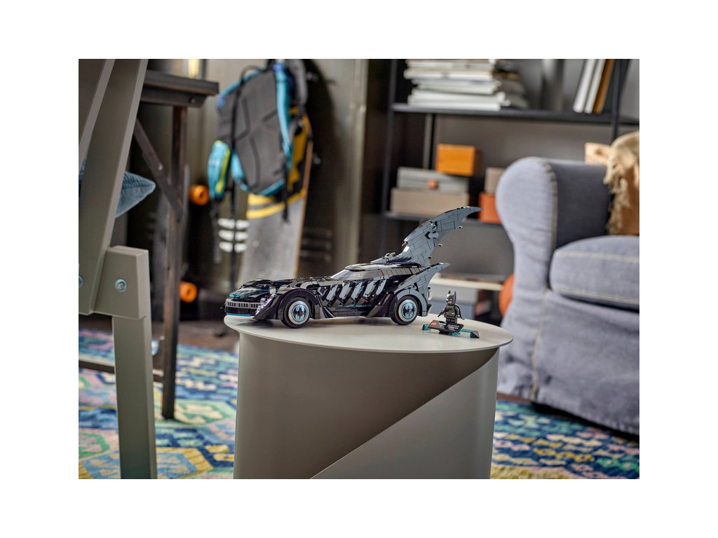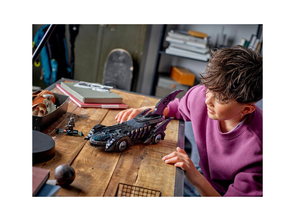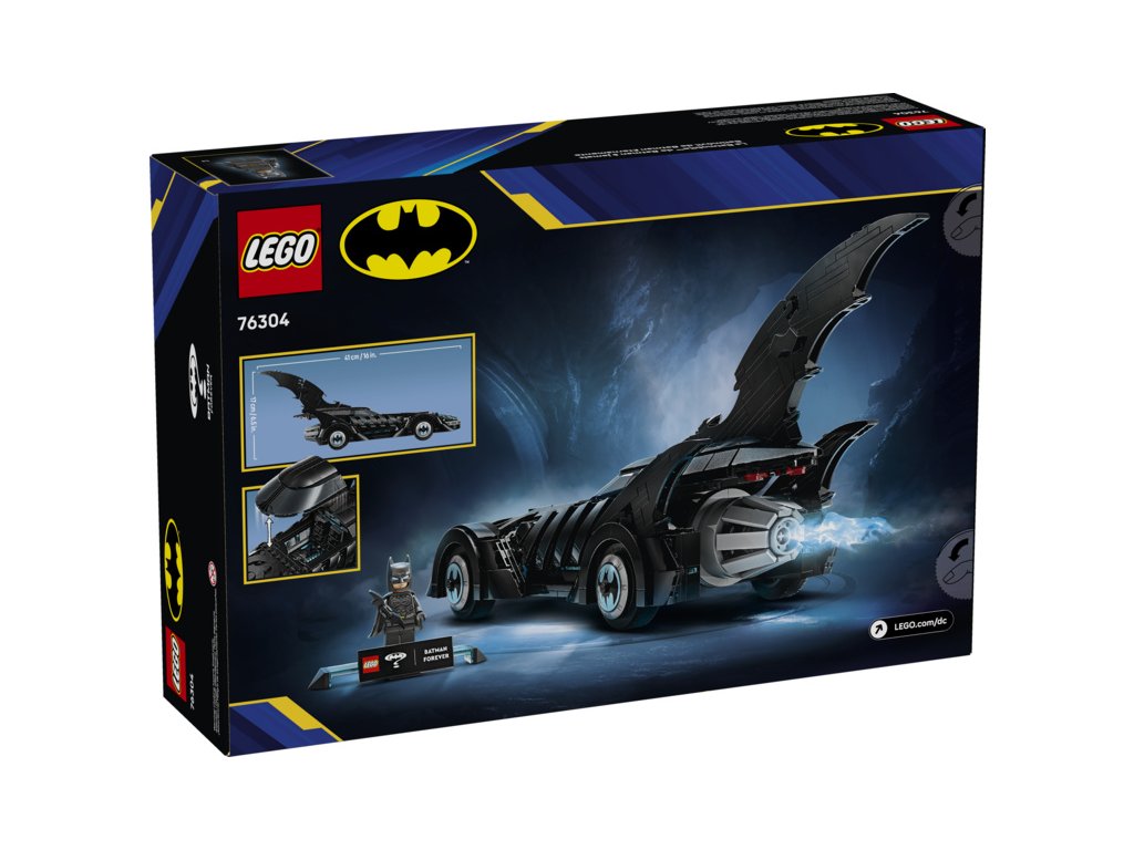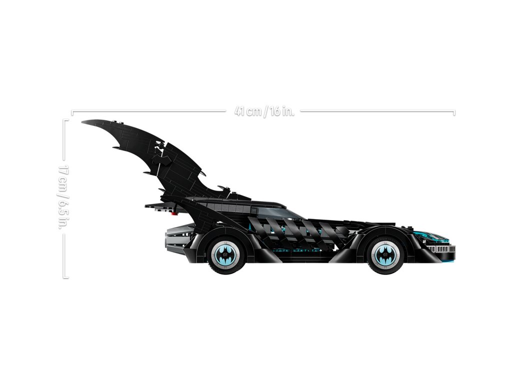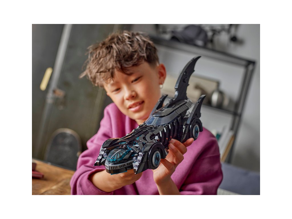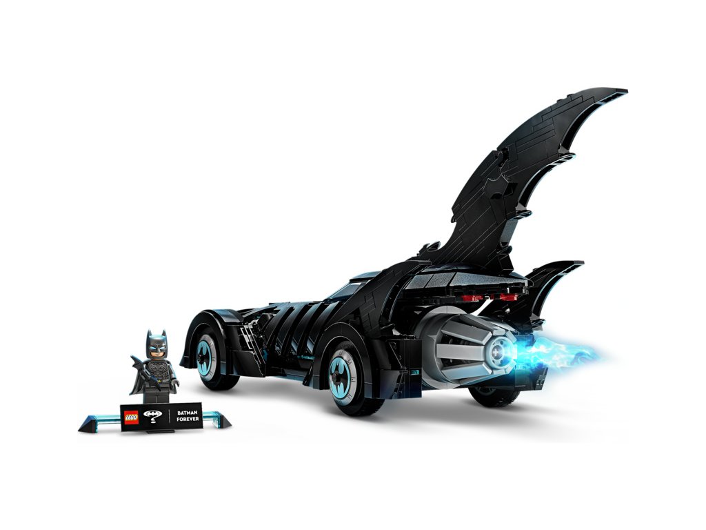 Tato autentická replika kultovního vozu z filmu Batman navždy obsahuje tvarované čelní sklo, pohyblivá kola, dekorace a otevírací kokpit, který odhaluje propracovaný interiér. Součástí vozidla je také minifigurka Batmana s vlastním speciálním podstavcem. Pro ještě větší porci digitální zábavy stavitelé můžou přibližovat a otáčet modely ve 3D a sledovat pokrok pomocí zábavné a intuitivní aplikace LEGO Builder. Stavebnice obsahuje 909 dílků.