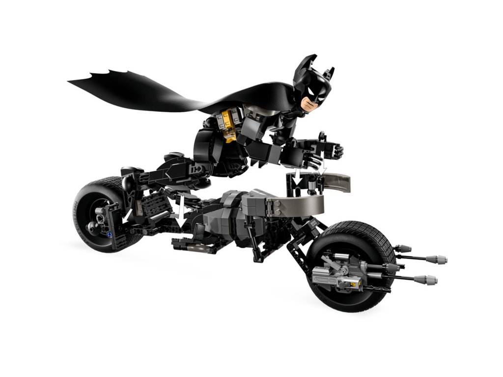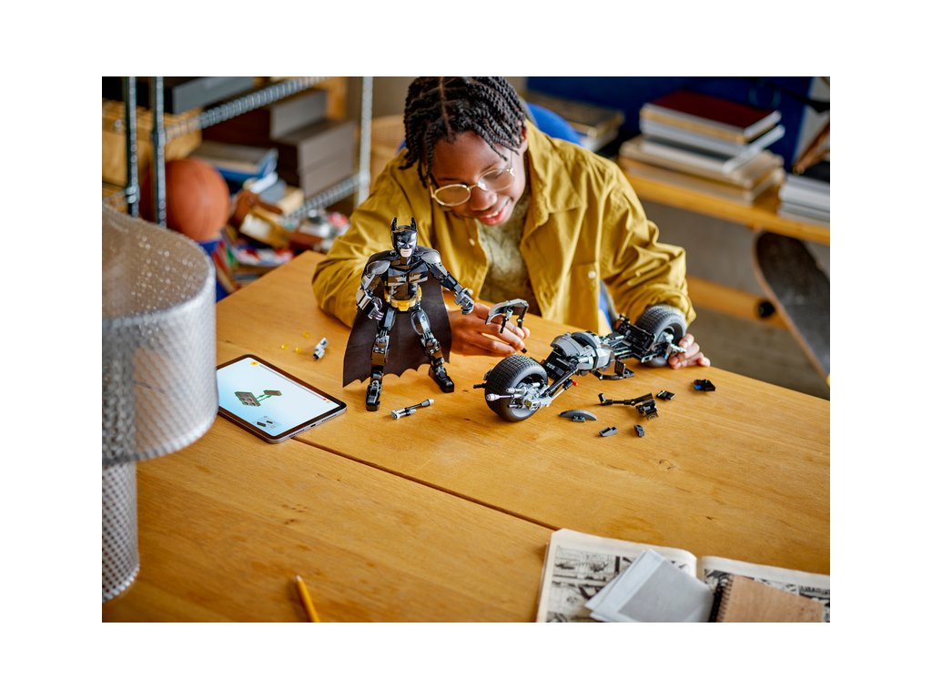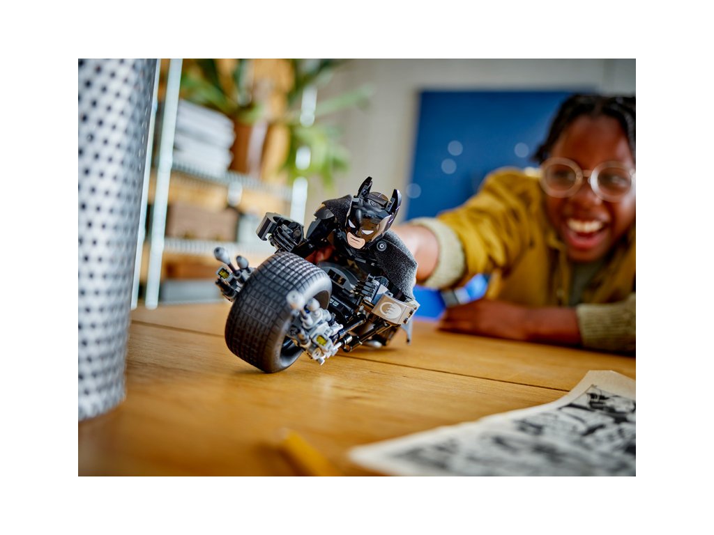 Pohyblivá ramena, paže, kyčle a nohy umožní dětem figurku na polohovat do parádních dynamických póz. Figurka superhrdiny je tak vhodná na stavění, hraní i vystavování. Stavebnice s autenticky propracovanou akční figurkou Batmana obsahuje parádní elegantní motorku Bat-Pod se 2 odpalovači. Pro ještě větší digitální zábavy mohou stavitelé přibližovat a otáčet stavebnice ve 3D a sledovat svůj pokrok pomocí zábavné a intuitivní aplikace LEGO Builder.