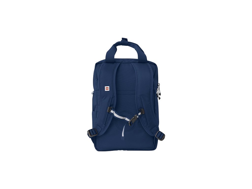 LEGO batoh Signature Brick ve stylovém designu ikonické Lego kostičky ve tvaru 2x2. Batoh má hlavní kapsu, přední kapsu a menší kapsičky v kruhových výstupcích s logem LEGO. Polstrované ramenní popruhy, hrudní popruh. Rozměry: 37 x 25,5 x 15 cm, objem: 15 litrů.