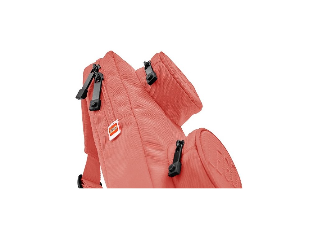 LEGO batůžek Signature Brick ve stylovém designu ikonické Lego kostičky ve tvaru 1x2. Batoh má hlavní kapsu a menší kapsičky v kruhových výstupcích s logem LEGO. Ramenní popruh přes jedno rameno.