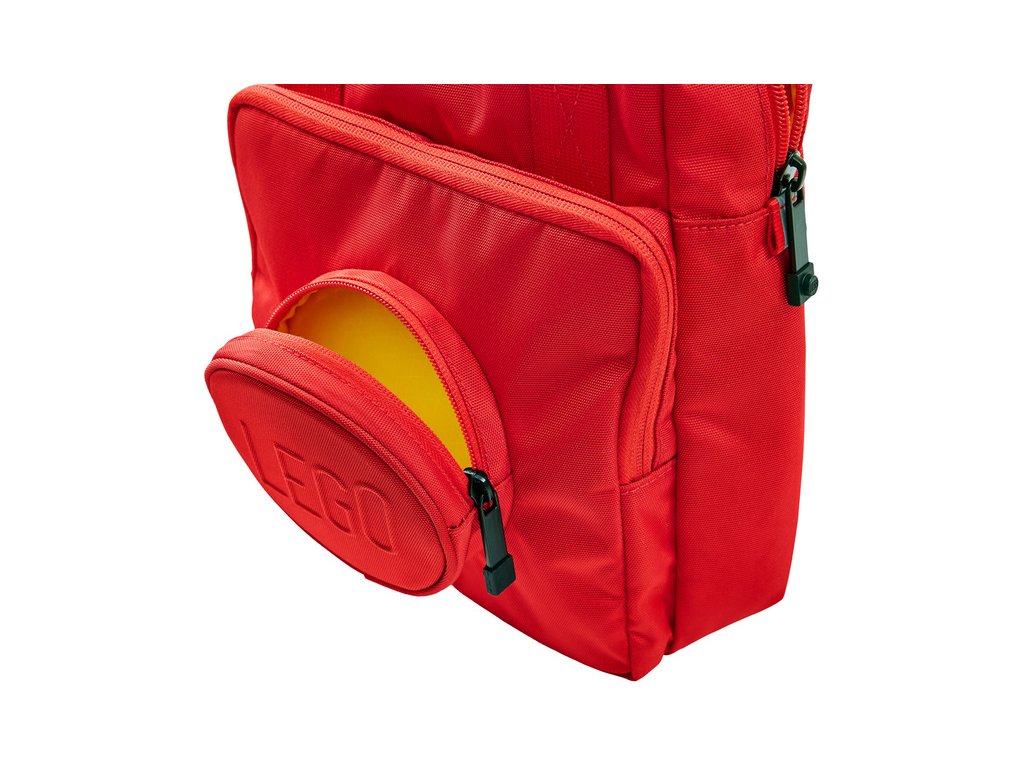 LEGO batoh Signature Brick ve stylovém designu ikonické Lego kostičky ve tvaru 1x1. Batoh má hlavní kapsu, přední kapsu a menší kapsičku v kruhovém výstupku s logem LEGO. Rozměry: 29 x 20 x 10 cm, objem: 7 litrů.