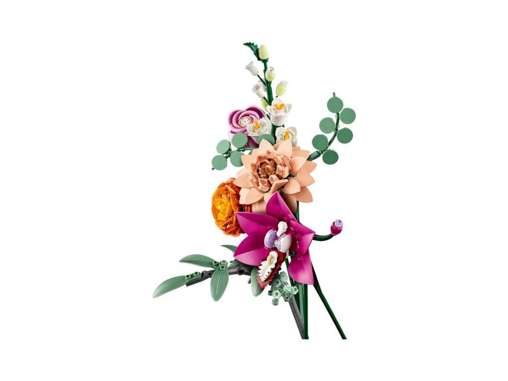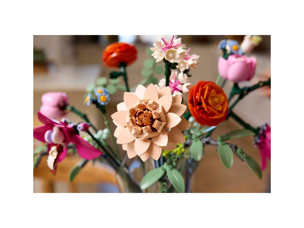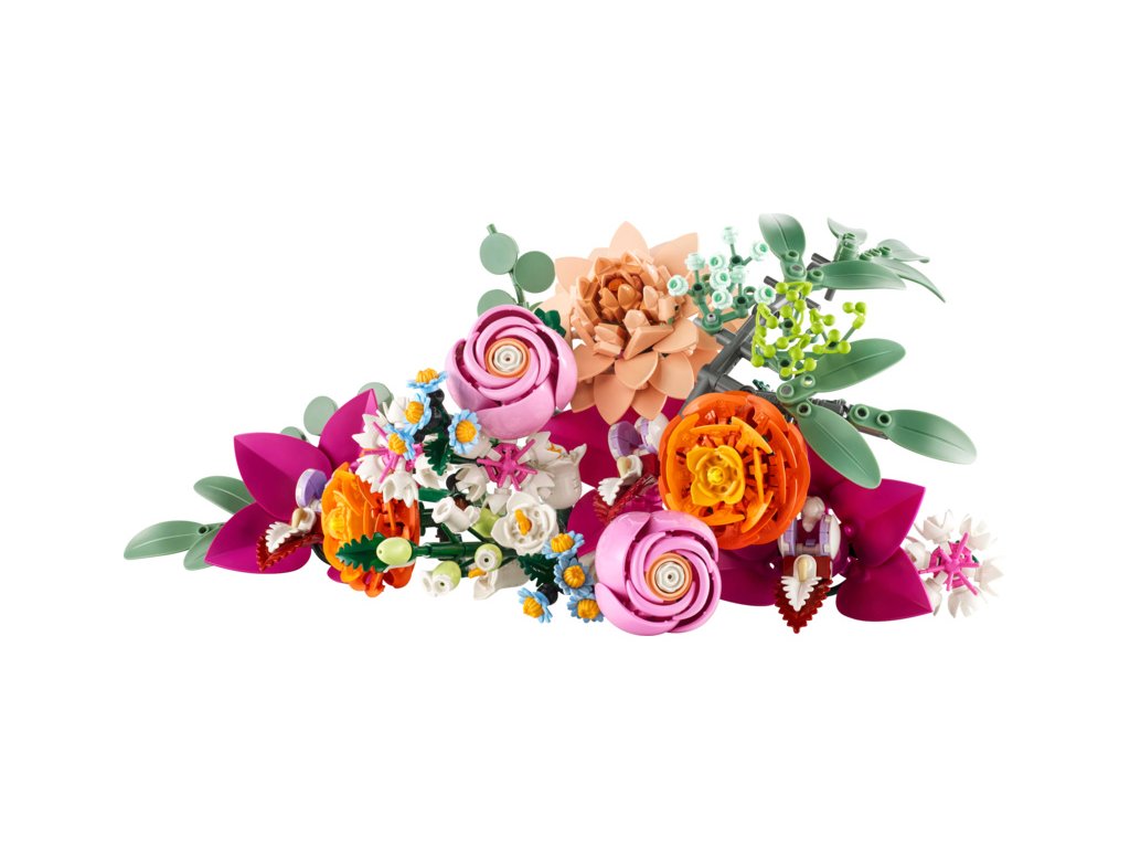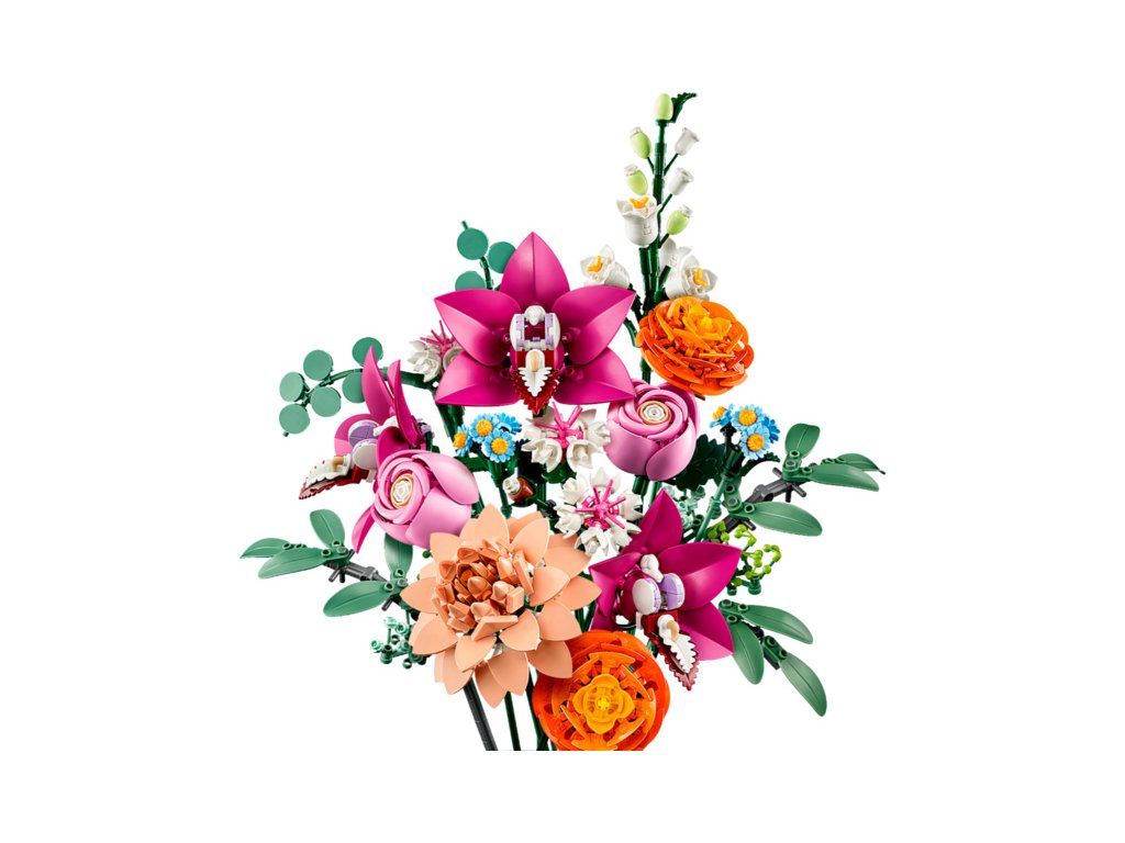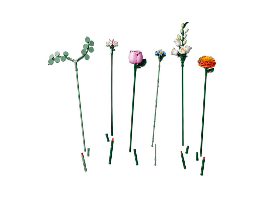 Začínající květináři si oddechnou při stavění kytice z 15 květin LEGO, včetně sedmikrásek, chrp, eukalyptu, bezových květů, růží, pryskyřníku, orchidejí Cymbidium, růžové jiřiny a zvonku. Stonek každého květu je nastavitelný, takže kytici si můžete naaranžovat podle libosti a vystavit si ji doma nebo v kanceláři. Květiny můžete naaranžovat společně s dalšími kyticemi LEGO (prodávají se samostatně), a vytvořit tak velký, unikátní výstavní kousek.
