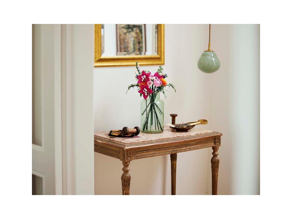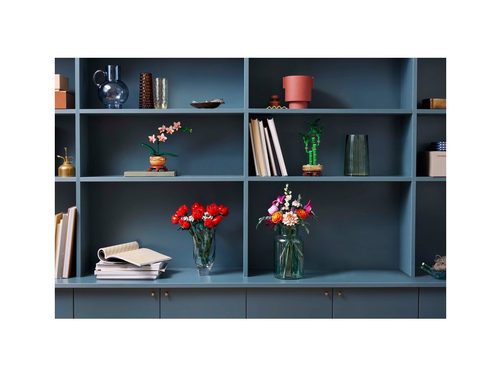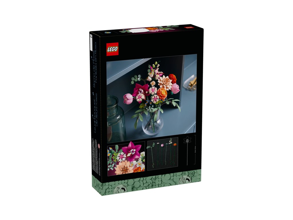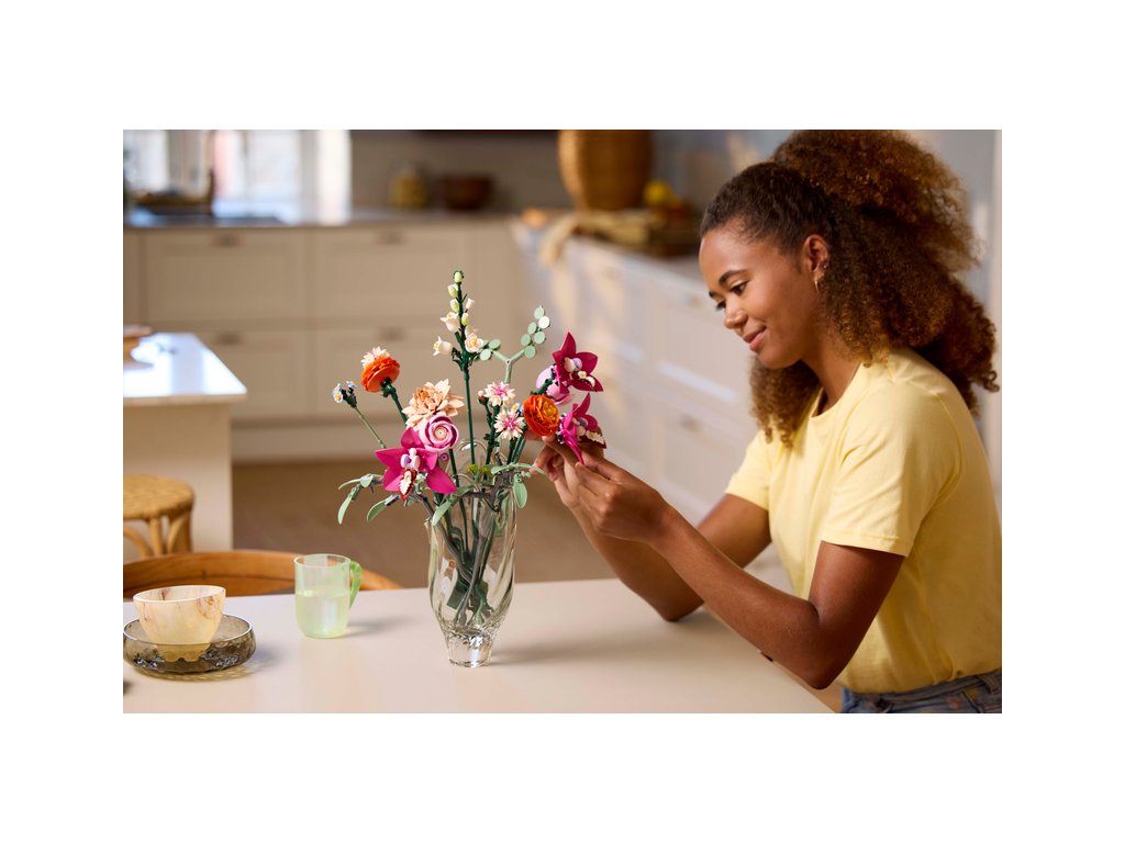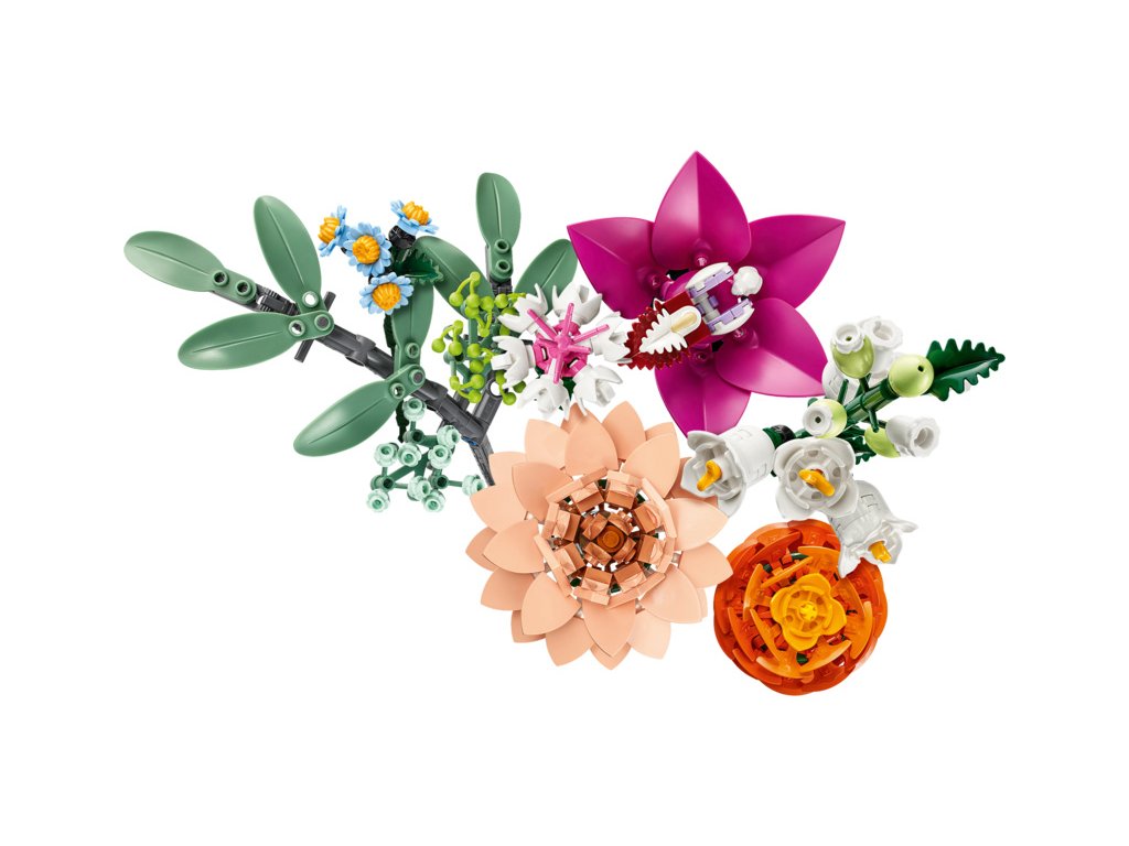 Začínající květináři si oddechnou při stavění kytice z 15 květin LEGO, včetně sedmikrásek, chrp, eukalyptu, bezových květů, růží, pryskyřníku, orchidejí Cymbidium, růžové jiřiny a zvonku. Stonek každého květu je nastavitelný, takže kytici si můžete naaranžovat podle libosti a vystavit si ji doma nebo v kanceláři. Květiny můžete naaranžovat společně s dalšími kyticemi LEGO (prodávají se samostatně), a vytvořit tak velký, unikátní výstavní kousek.
