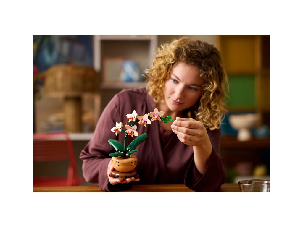 Pěstujte kreativitu se stavebnicí LEGO® (10343) Miniaturní orchidej pro dospělé. Tato orchidej je nádherný dekorativní dárek pro ženy, muže a milovníky květin a poslouží jako krásná květinová výstavka, kterou nemusíte zalévat.