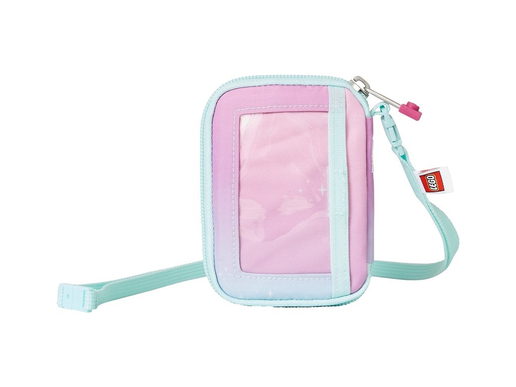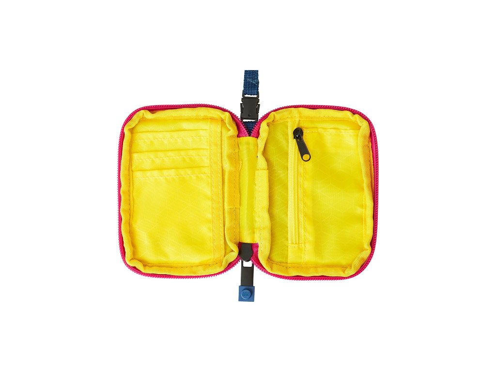 Peněženka s motivem LEGO určitě potěší každého fanouška. Peněženka má vnitřní a vnější kapsou na zip, která je vhodná na mince či jiné drobné předměty. Má prostor až pro 3 karty, vnější průhledná přihrádka je ideální např. na uložení cestovního dokladu. Díky pásku na pověšení na krk s bezpečnostní pojistkou může být snadno přenášena a může se stát ideálním společníkem nejen dětí na výletech. Díky sjednocenému typu používaných přezek může být kapsička připnuta ke všem LEGO školním aktovkám a poutko použito například jako poutko na klíče.