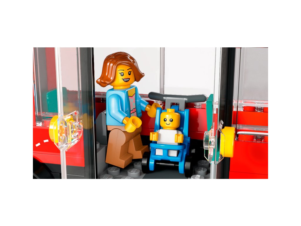 - Co najdete v krabici? – Tato stavebnice obsahuje vše, co děti potřebují k sestavení dvoupodlažního autobusu s vyhlídkovou plošinou a 5 minifigurek včetně miminka s kočárkem pro zábavné hraní