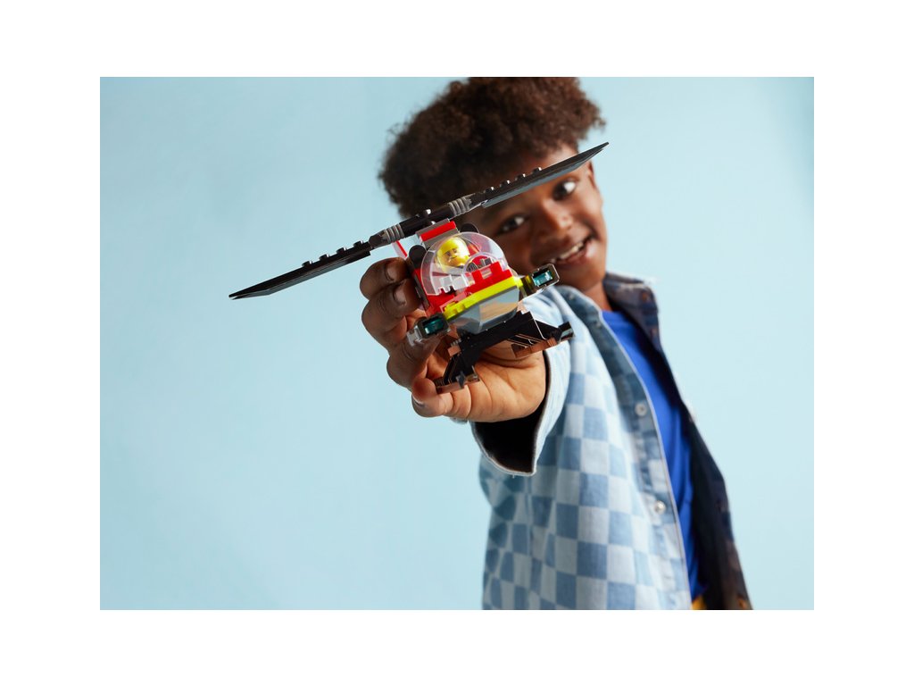 - Nápadité hraní – Děti mohou usadit pilota do otevírací kabiny, roztočit rotory a odpálit vodní prvky LEGO® z vodních děl na vrtulníku