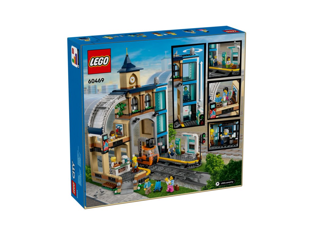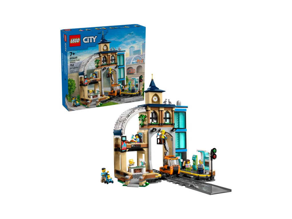 Stavebnice LEGO® City (60469) Hlavní vlakové nádraží pro děti od 7 let má 3 patra a je plná parádních funkcí pro kreativní hraní. V modelu stanice s klasickou hodinovou věží najdete útulnou kavárnu, funkční výtah, řídicí místnost, autobusovou zastávku, 2 nástupiště pro cestující, obrazovku s jízdními řády a automat na jízdenky. Nechybí údržbářský vůz vybavený pracovní plošinou, 6 minifigurek, figurka miminka a 2 figurky holubů na hraní na postavy a vyprávění příběhů.