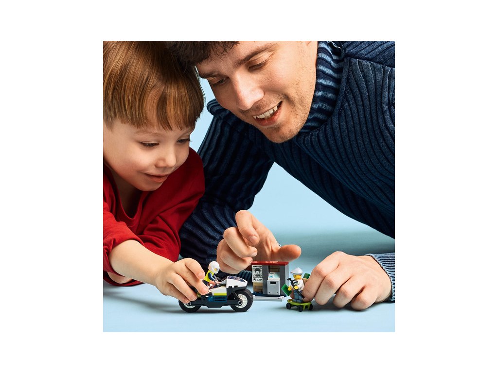 Překvapte svého mladého akčního hrdinu touto vzrušující stavebnicí Policejní honička na motorce od LEGO® City. Je ideální pro malé stavitele od 4 let.