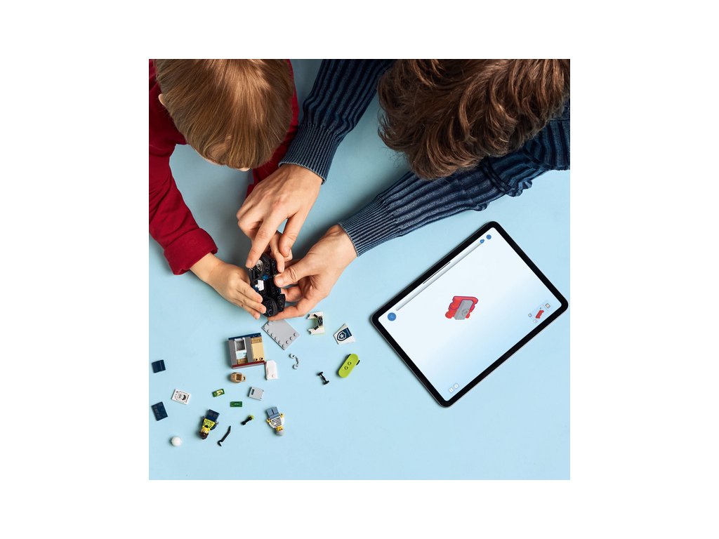 Tato snadno sestavitelná policejní stavebnice obsahuje začátečnickou kostku LEGO a obrázkový návod, který vás provede stavěním – nebo se můžete se svým malým hrdinou vydat na napínavou stavitelskou cestu s digitálním návodem v aplikaci LEGO Builder. Děti si v ní můžou přibližovat a otáčet modely ve 3D, sledovat postup stavění a objevovat a ukládat si další stavebnice.