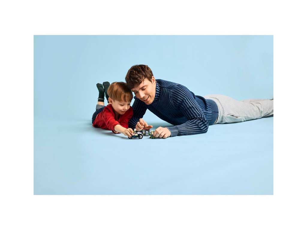 - Snadno sestavitelná policejní stavebnice – Součástí této stavebnice je začátečnická kostka LEGO®, jednoduchý obrázkový návod na stavění a 3D digitální návod v aplikaci LEGO Builder