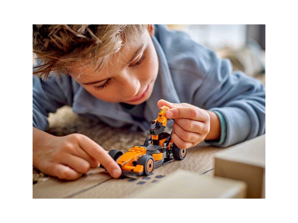 - Model závodního vozu LEGO® Formule 1 pro děti od 6 let – Děti se ponoří do napínavých závodů se stavebnicí Jezdec F1® se závodním vozem McLaren