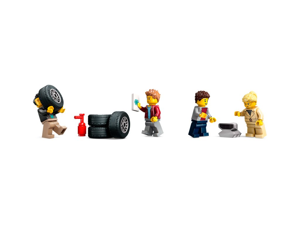 - Kamion pro přepravu aut se zábavnými doplňky – Součástí této sady je řada doplňků pro minifigurky LEGO® včetně lékárničky a hasicího přístroje