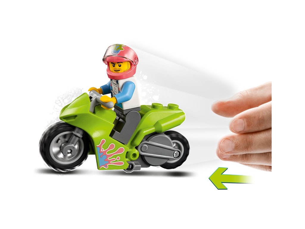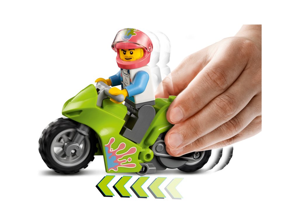 - Děti se pustí do přehrávání úžasných vystoupení a soutěží s kaskadérskou motorkou se setrvačníkem a 2 monster trucky, které zvládnou přejet i auto. Zkombinujte tuto stavebnici s dalšími modely LEGO® City Stuntz pro ještě více zábavy!