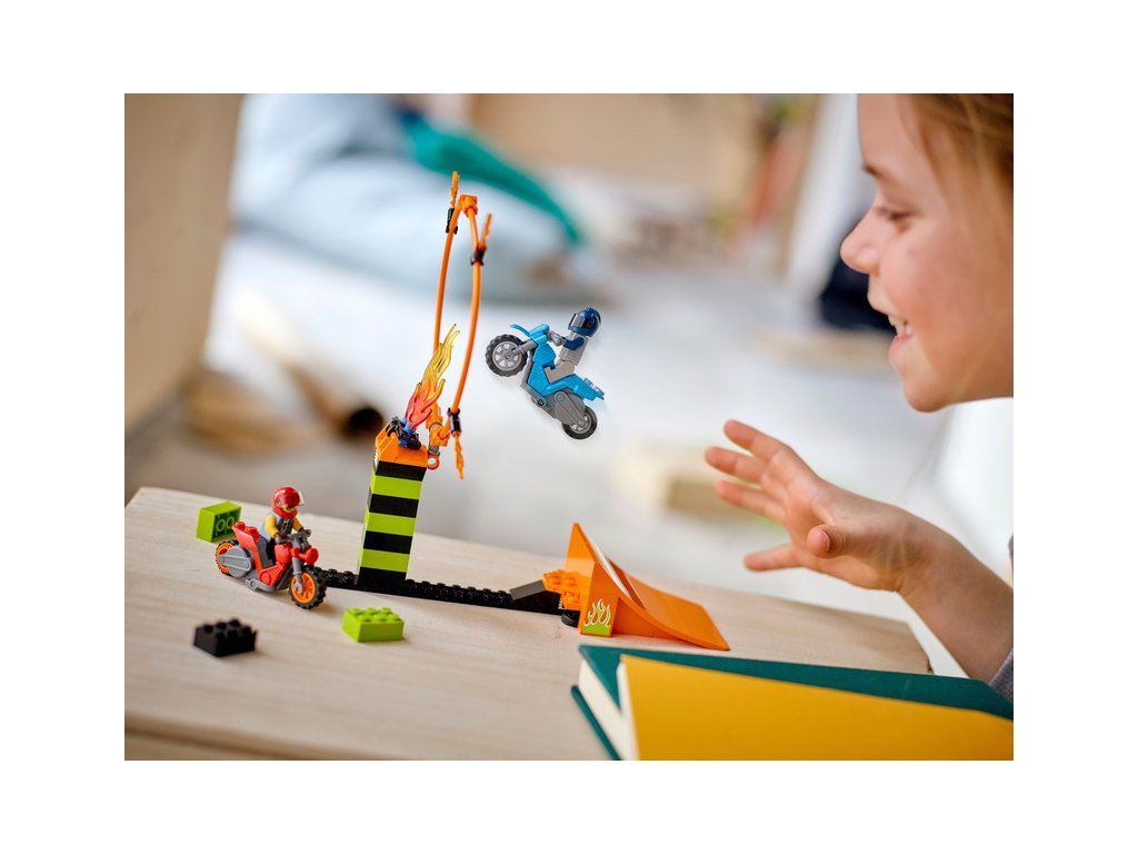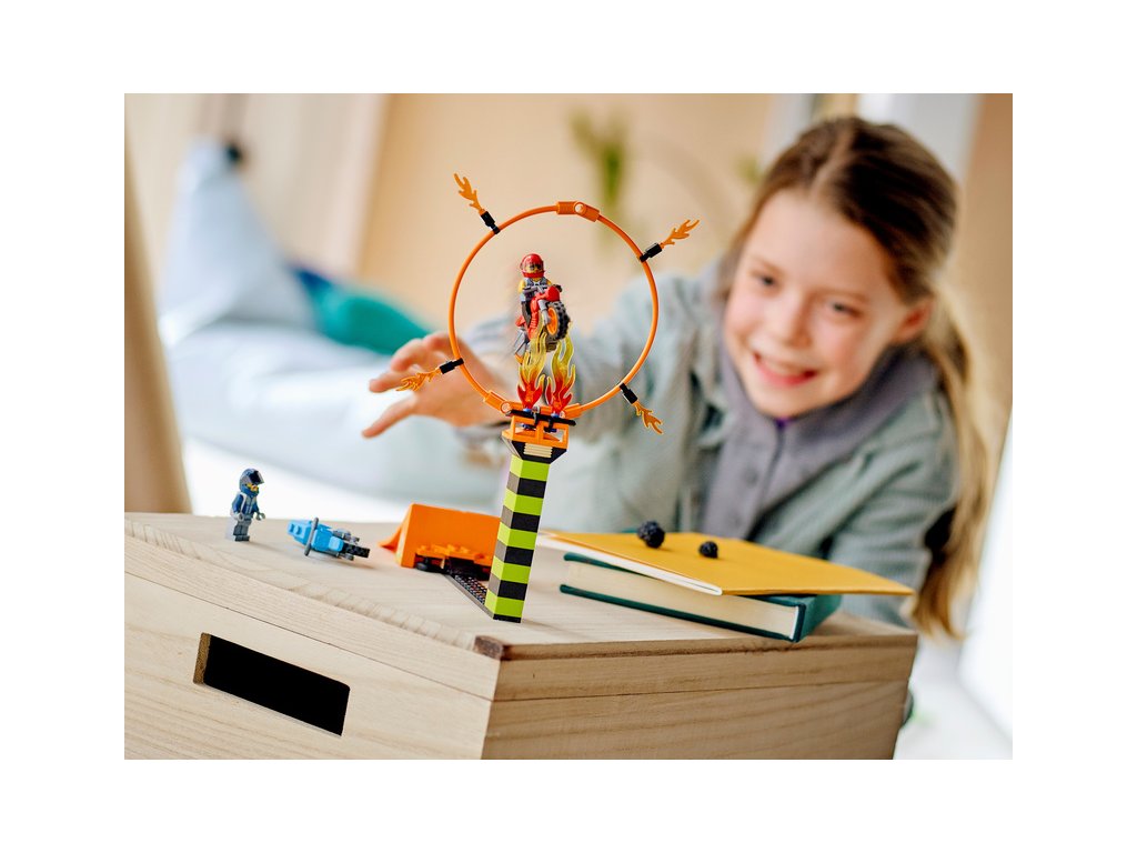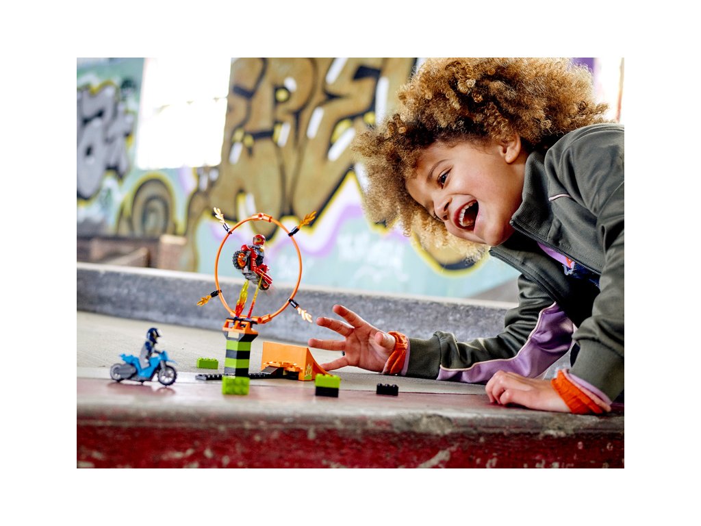 Stavebnice LEGO City Stuntz zavedou děti do akčního světa kaskadérů, kde na ně čeká motorka se setrvačníkem a spousta realistických modelů a zábavných postav, které inspirují k přehrávání vzrušujících scénářů ze skutečného života. Stavebnice LEGO City Stuntz můžete kombinovat pro ještě větší porci dobrodružství!