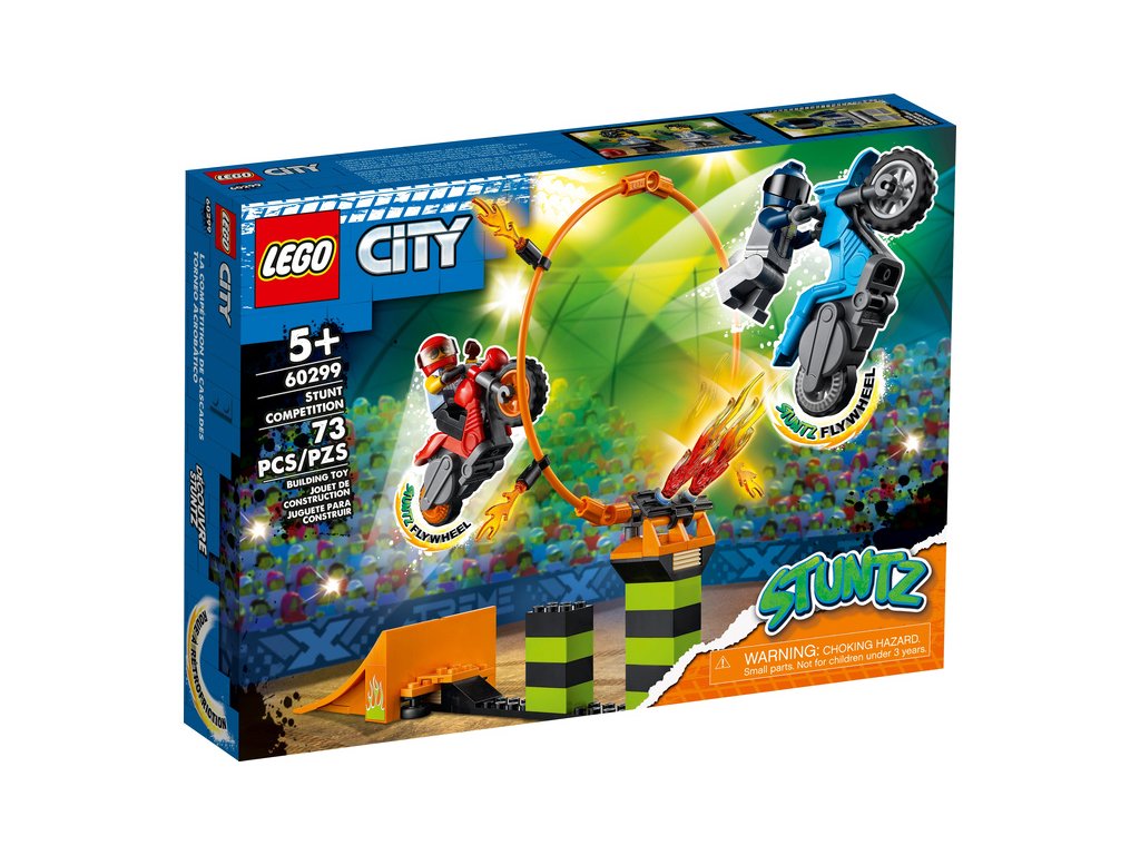 - Stavebnice Kaskadérská soutěž od LEGO® City (60299) dětem umožní vychutnat si akční zábavu se 2 motorkami se setrvačníkem, kaskadérskou dráhou a 2 jezdci, včetně hrdiny televizního seriálu LEGO City.
