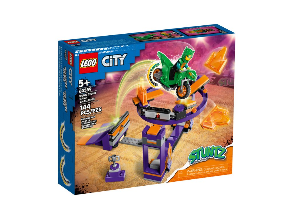 Stavebnice Kaskadérská rampa s obručí od LEGO® City (60359) zaručí hodiny úžasných kaskadérských triků a soutěží. Děti obruč umístí do vodorovné nebo svislé polohy, rozjedou kaskadérskou motorku a vyletí do vzduchu, kde předvedou super akční kousky. Sada obsahuje minifigurku jezdce Stuntz.