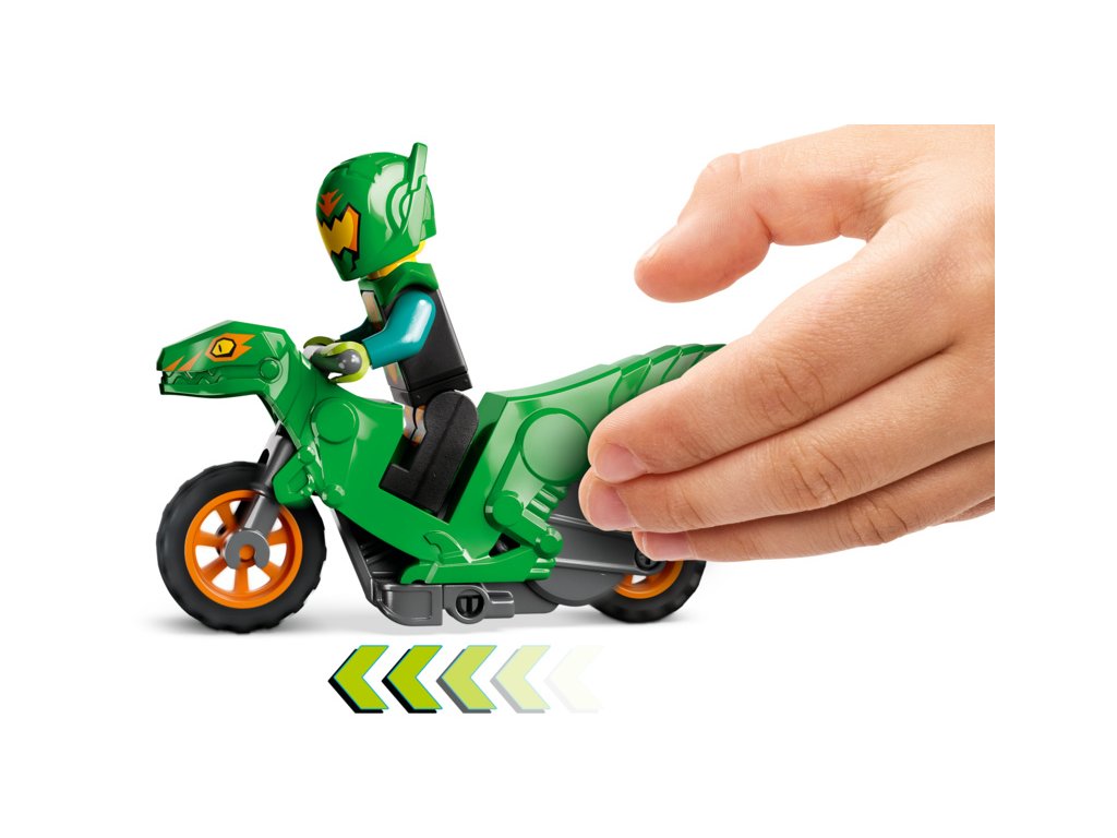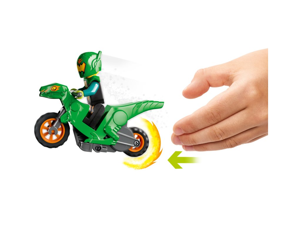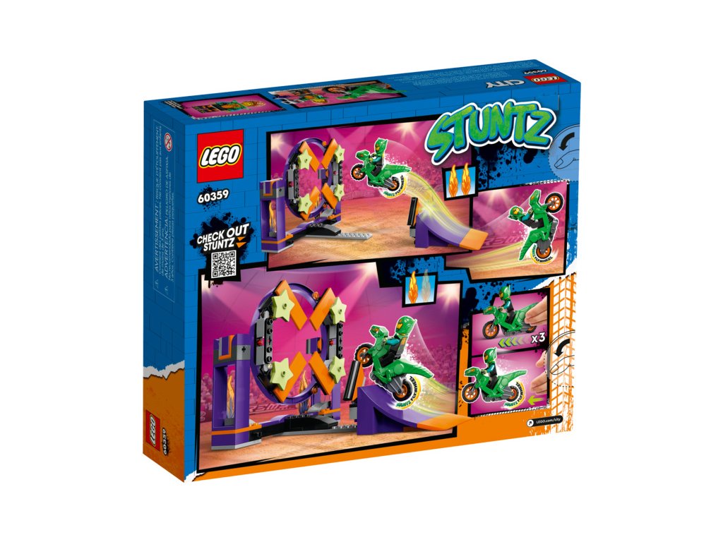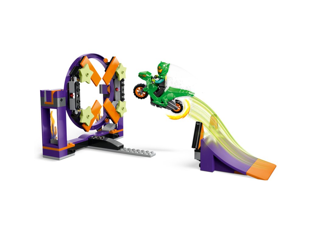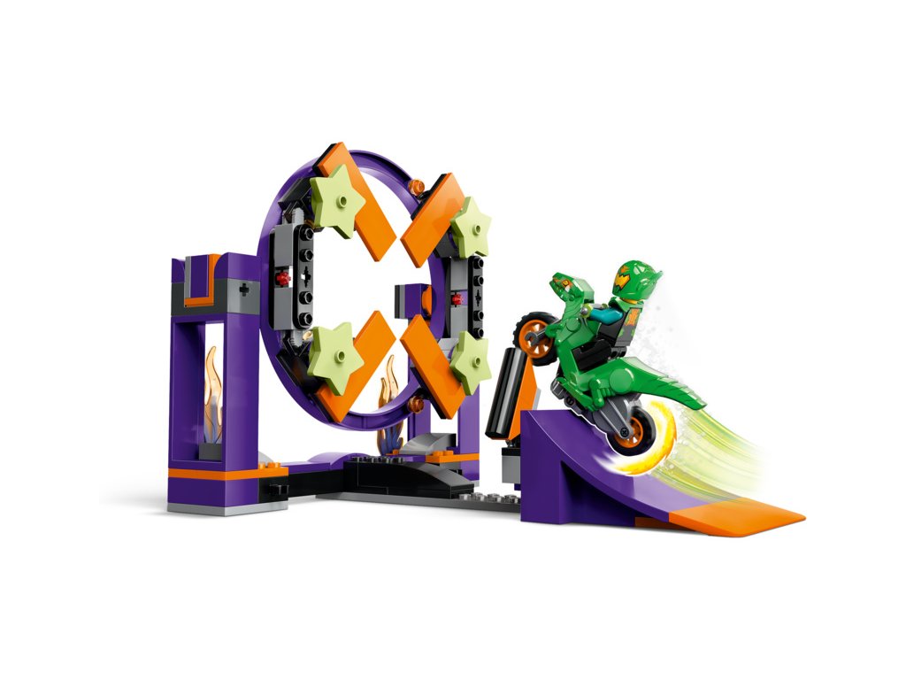 - Co vás čeká v krabici? – Tato stavebnice obsahuje LEGO® City Stuntz vodorovně nebo svisle sestavitelnou smyčku, startovací rampu, kaskadérskou motorku se setrvačníkem a minifigurku jezdce