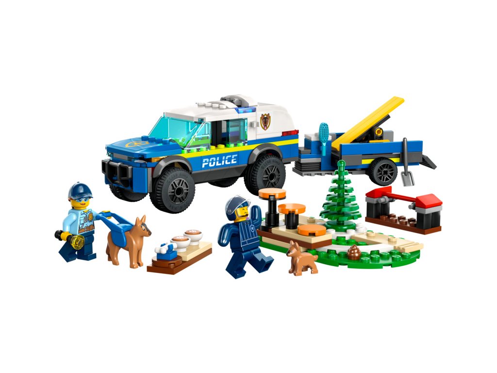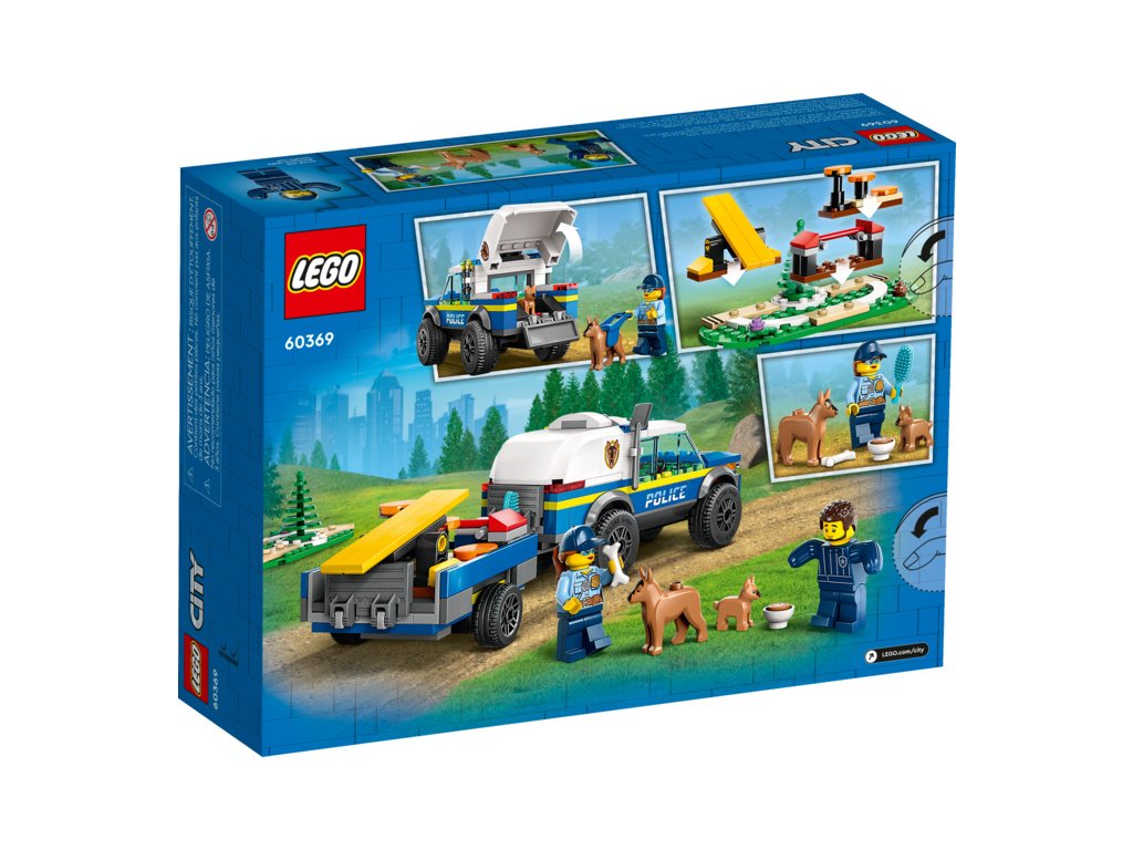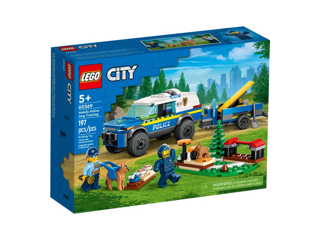- Stavebnice na motivy výcviku policejních psů – Mobilní cvičiště policejních psů od LEGO® City (60369) přináší spoustu inspirativních doplňků pro nápadité hraní s pejsky