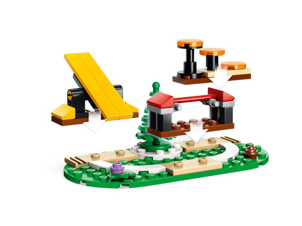 - Zábavné doplňky a funkce – Na cvičišti najdete houpačku, tyč na přeskoky a stupátka