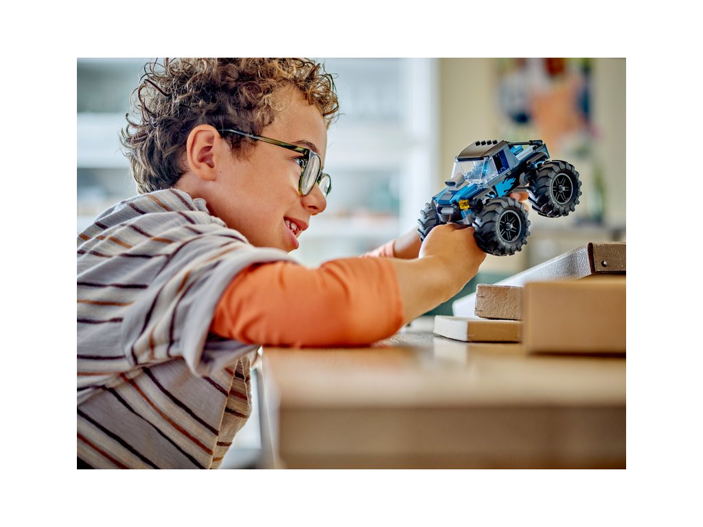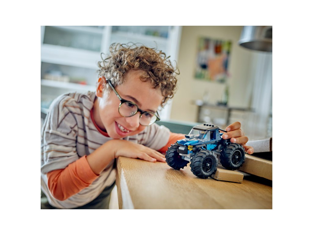 Se stavebnicí LEGO® City Modrý monster truck děti předvedou úžasné kaskadérské kousky v terénu.