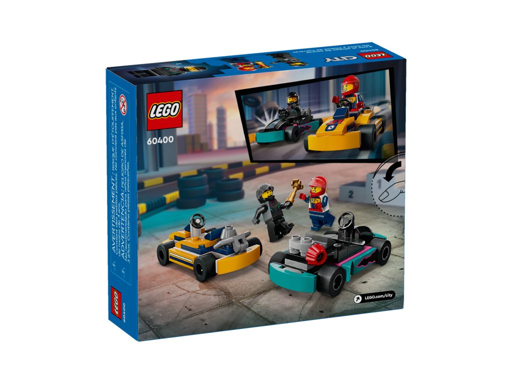 Fanoušci závodních hraček od 5 let si užijí nekonečnou porci akční zábavy se stavebnicí LEGO® City (60400) Motokáry s řidiči. Malí závodníci si vyberou ze 2 minifigurek řidičů a vydají se na strhující soutěž v oranžové nebo tyrkysové mini motokáře.