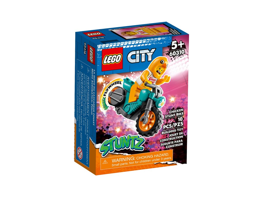 - Stavebnice LEGO® City Motorka kaskadéra Kuřete (60310) nabízí úžasnou motorku se setrvačníkem, s níž můžete předvádět dechberoucí kousky, a také postavu z televizního seriálu LEGO City Dobrodružství.