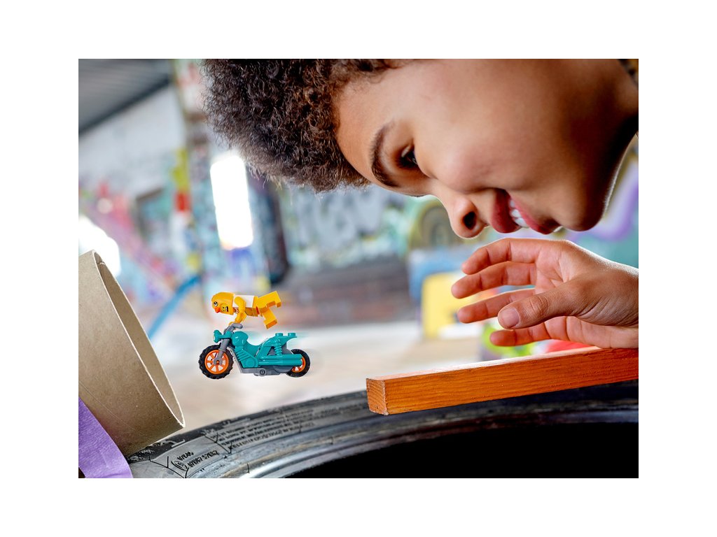 - Stavebnice Motorka kaskadéra Kuřete od LEGO® City představuje skvělý vánoční, narozeninový nebo jakýkoli jiný dárek pro fandy kaskadérů a děti ve věku od 5 let.