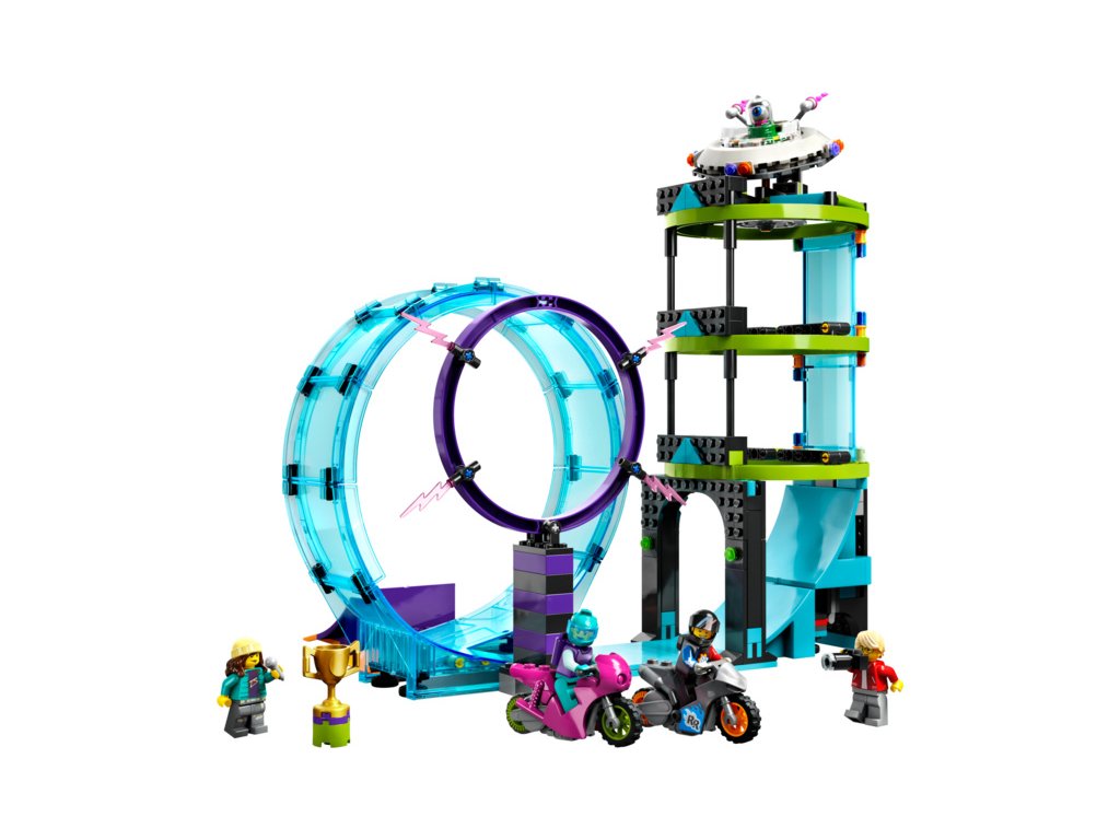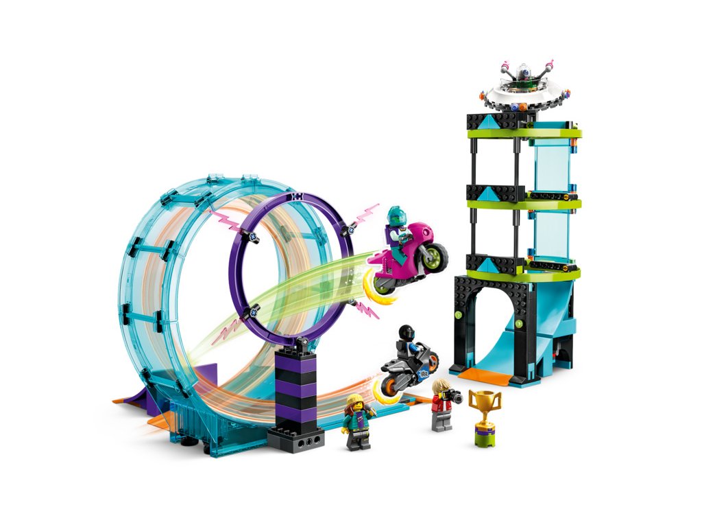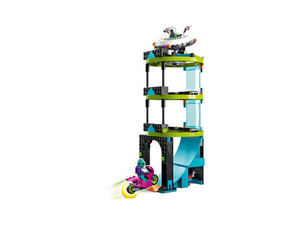 - Stavebnice LEGO® City Stuntz nabitá akcí – Děti mohou vyslat motorku do smyčky, skrz ohnivý kruh a na vrcholek mimozemšťanské věže
