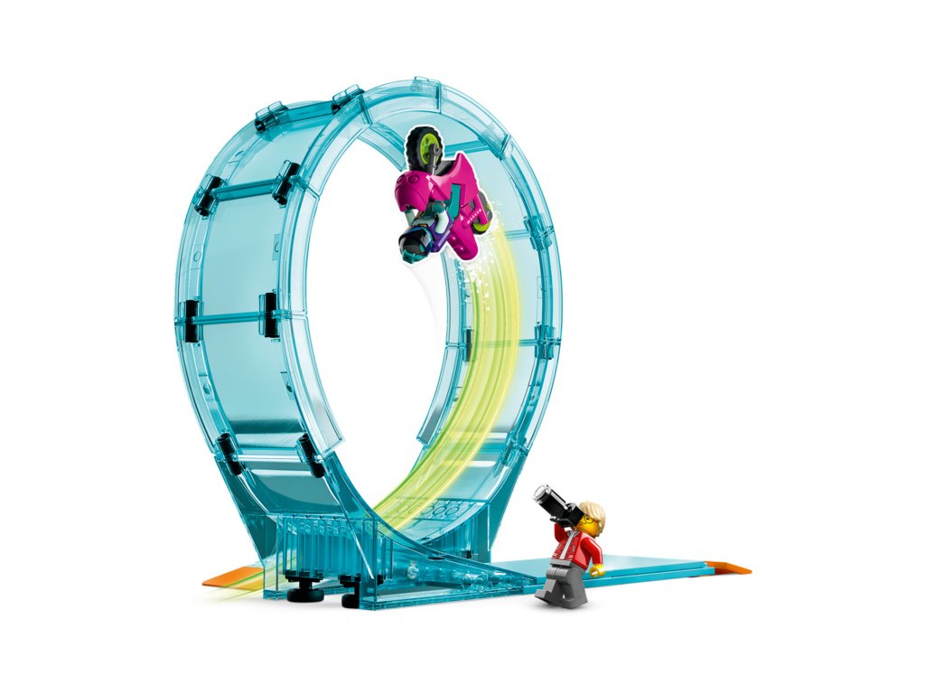 Stavebnice Nejbláznivější kaskadérská výzva od LEGO® City (60361) přinese dětem od 7 let celé hodiny zábavy. V této kaskadérské stavebnici najdete 2 kaskadérské motorky a 3 kombinovatelné prvky pro kaskadérské kousky včetně 360° smyčky, ohnivého kruhu a „mimozemšťanské věže“. Malí dobrodruhové mohou otestovat své schopnosti, vytvořit velkolepá představení a soutěžit s kamarády a rodinou o pohár vítěze.