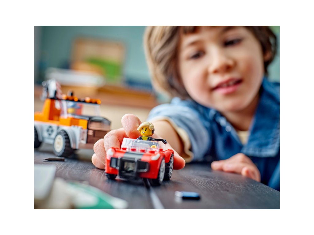 Vydejte se společně se svým malým hrdinou na zábavná dobrodružství se stavebnicí LEGO® City Odtahový vůz a oprava sporťáku a vyprávějte nápadité příběhy.