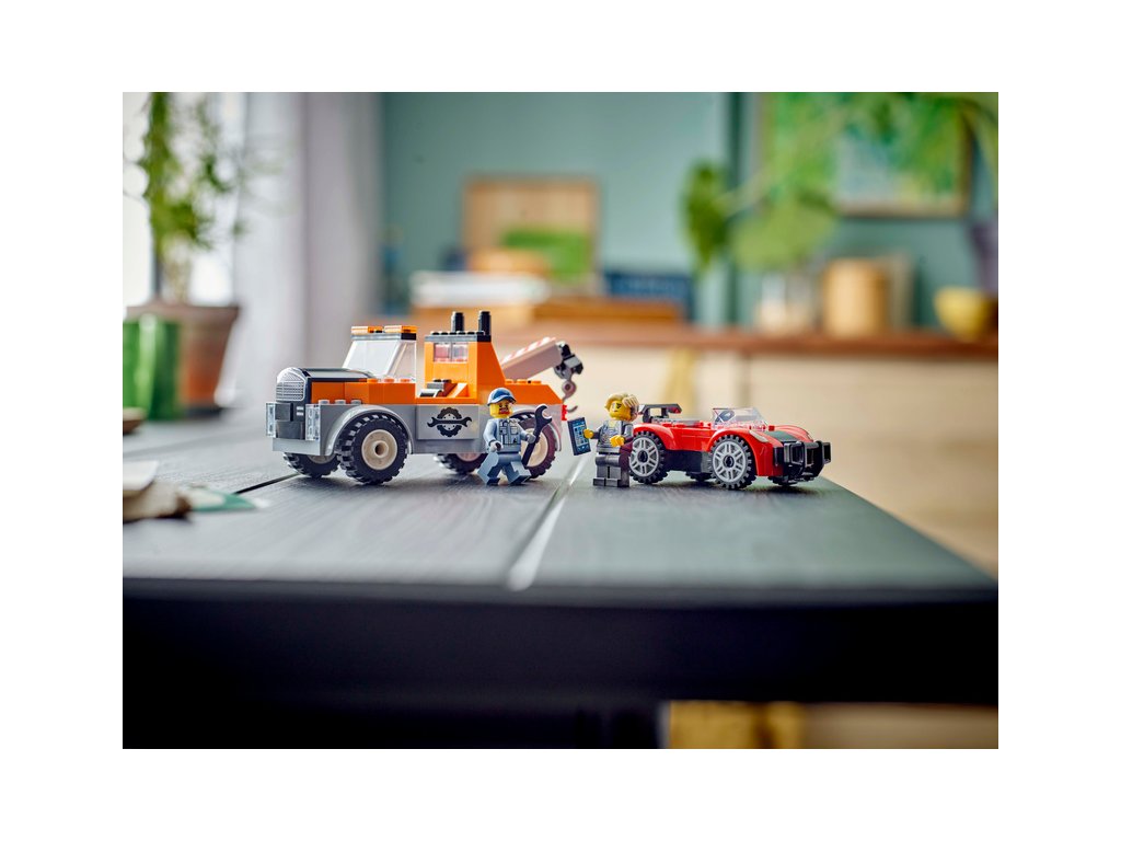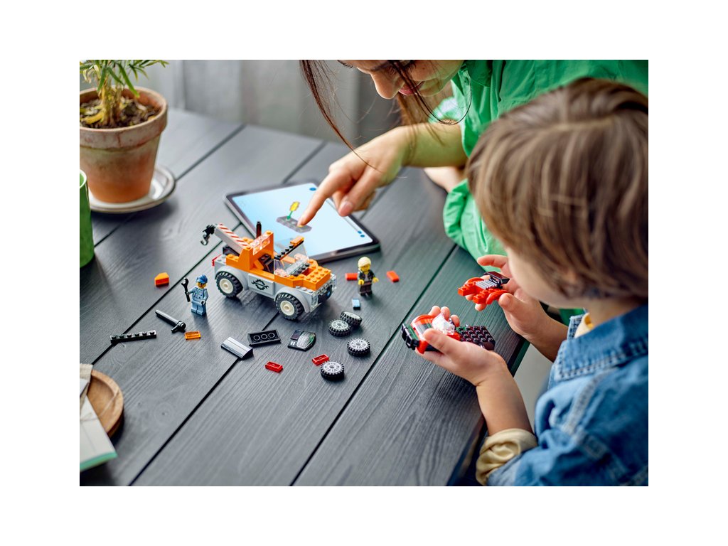 - Stavebnice odtahového vozu pro děti od 4 let – Vydejte se společně se svým malým hrdinou na zábavná dobrodružství se stavebnicí LEGO® City Odtahový vůz a oprava sporťáku a vyprávějte nápadité příběhy