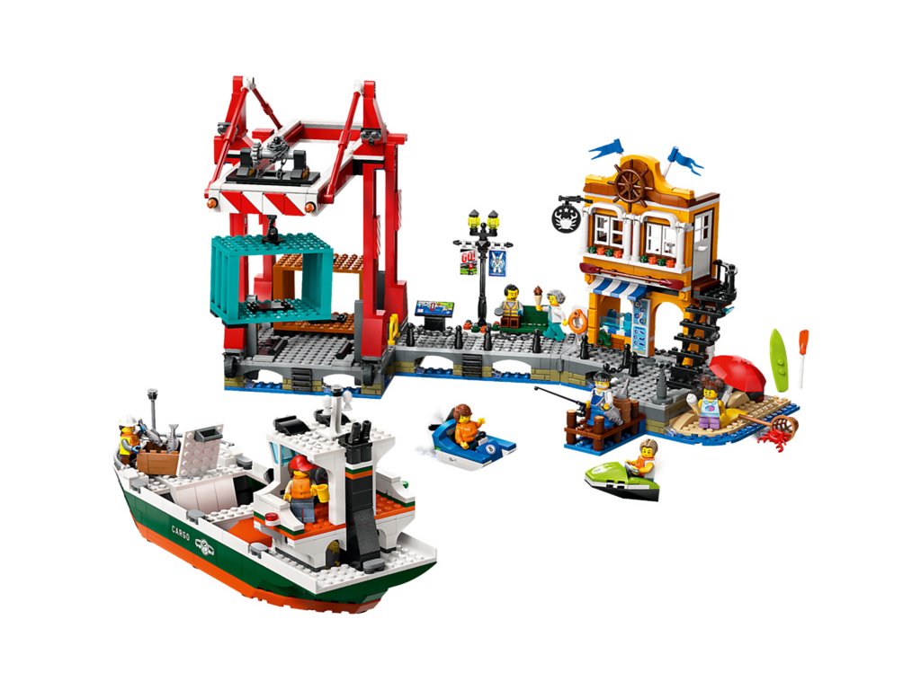 - Přístav s nákladní lodí – Darujte dětem od 8 let stavebnici LEGO® City Přístav s nákladní lodí s poklidnou atmosférou nábřeží
