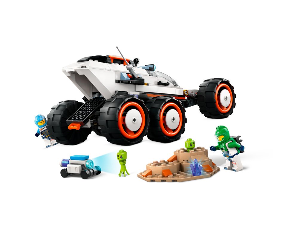 Děti se mohou projíždět novými světy díky herní stavebnici LEGO® City Průzkumné vesmírné vozidlo a mimozemský život, která obsahuje 2 minifigurky vesmírné posádky a 2 figurky mimozemšťanů.