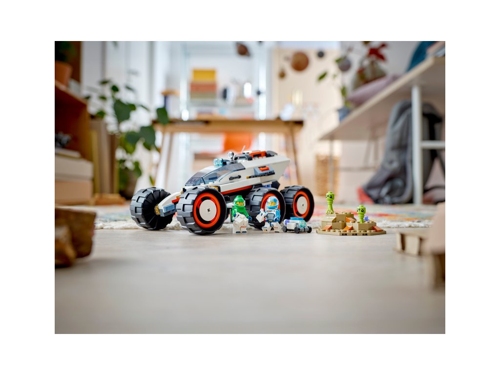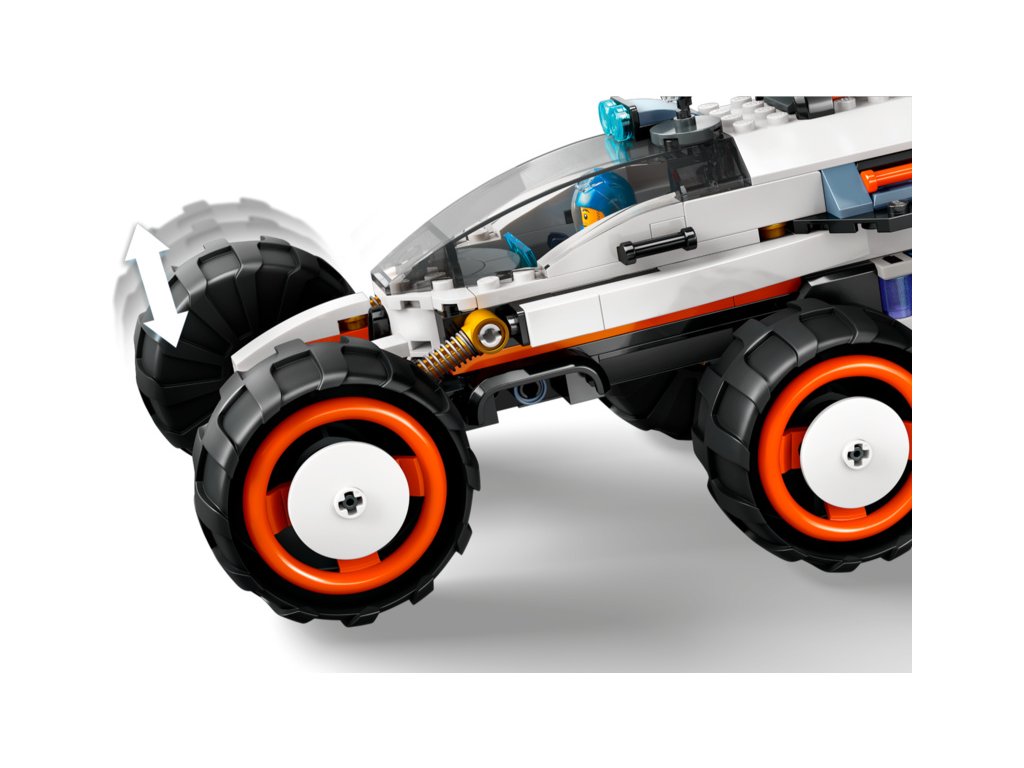 - Futuristické vesmírné vozidlo pro nápadité hraní – Model vesmírného terénního vozidla má detailní kabinu pro dva, 6 kol s velkými pneumatikami a pokročilé odpružení pro jízdu po planetách mimozemšťanů