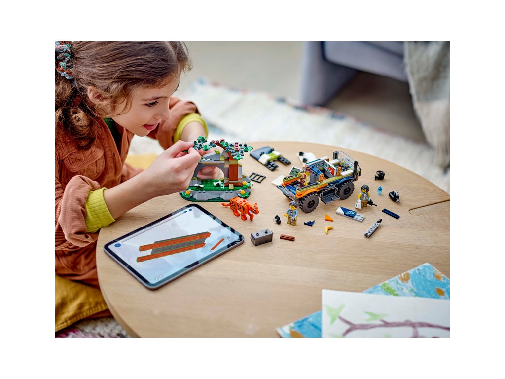 Součástí této hračky LEGO s motivem džungle je podrobný tištěný návod na stavění a 3D pokyny v aplikaci LEGO Builder, což je digitální průvodce stavěním s intuitivními nástroji přibližování a otáčení. Umožní jim prohlížet si modely ze všech úhlů, zatímco na nich pracují.