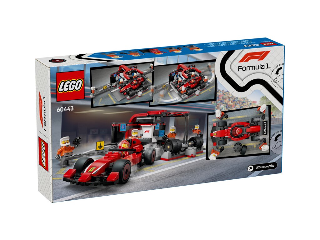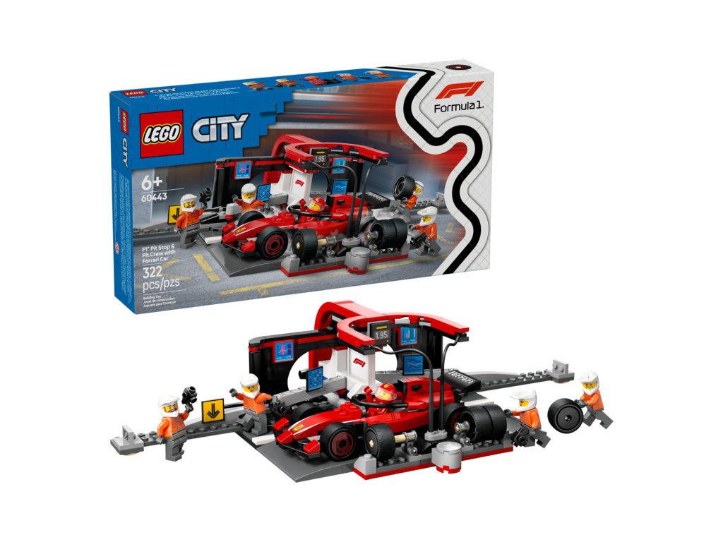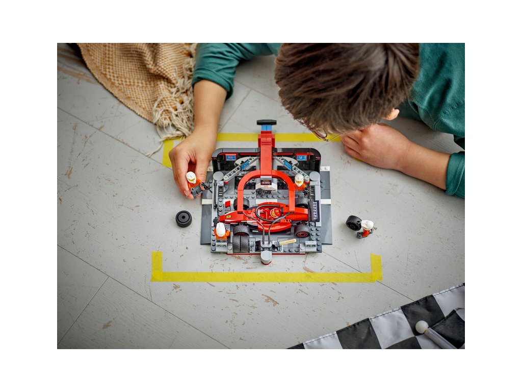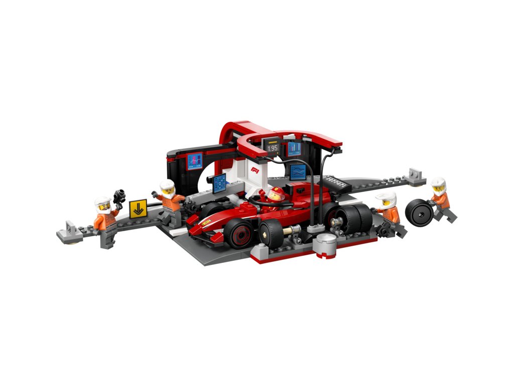 - Co najdete v krabici? – Vše, co děti potřebují k sestavení zastávky v boxech F1® a vozu Ferrari a minifigurky řidiče a 4 členů personálu