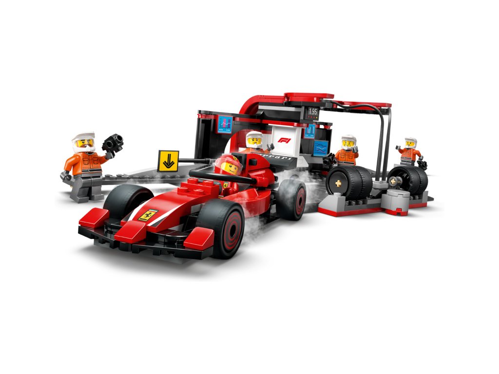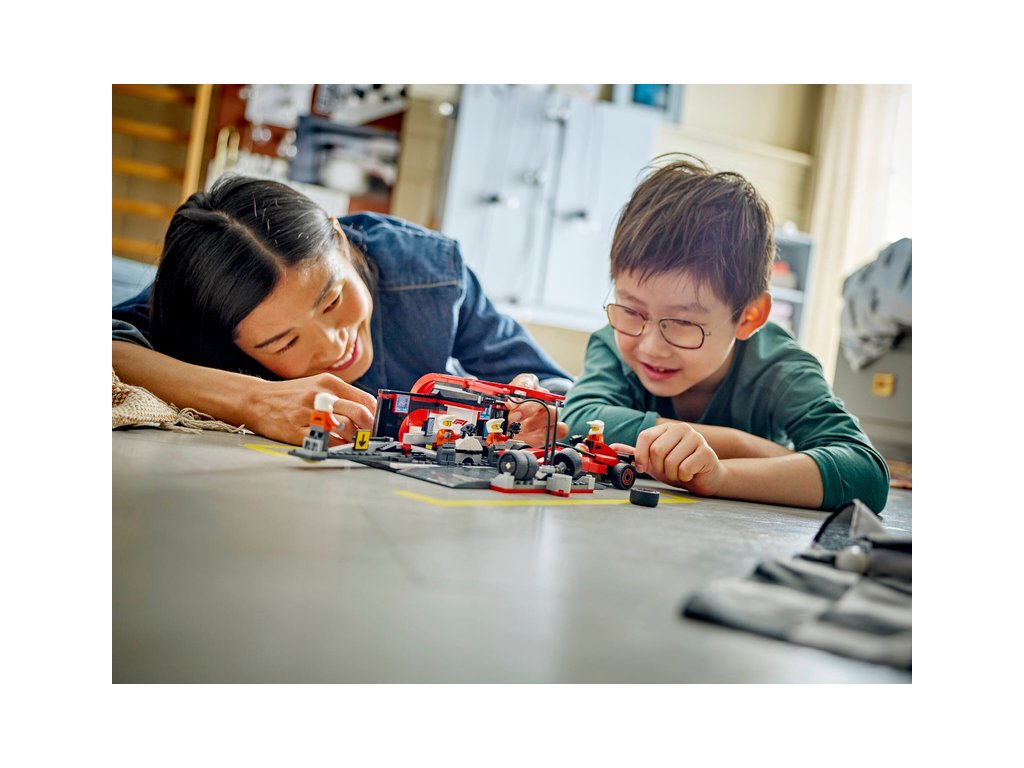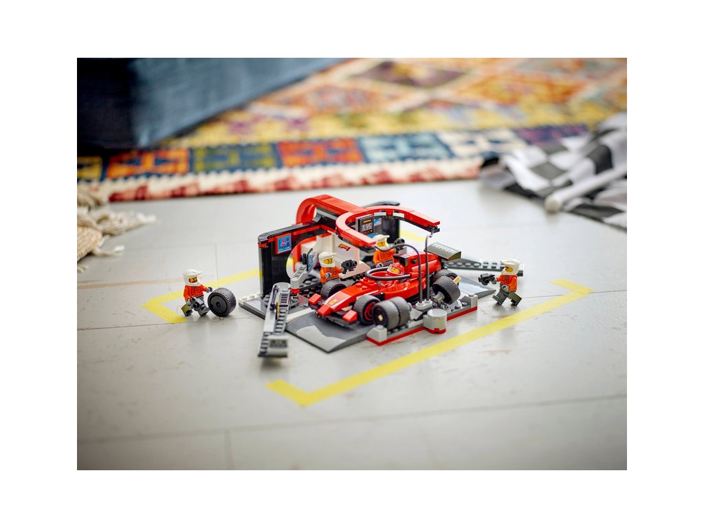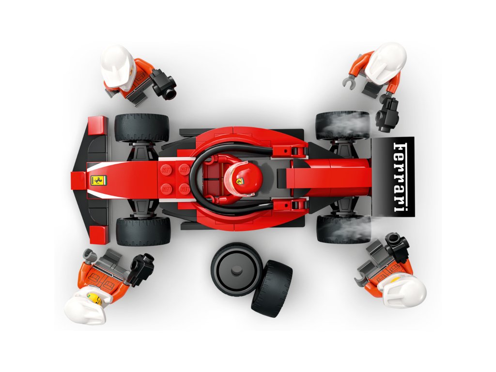 - Co najdete v krabici? – Vše, co děti potřebují k sestavení zastávky v boxech F1® a vozu Ferrari a minifigurky řidiče a 4 členů personálu
