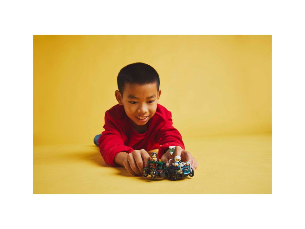 - Nápadité hraní – Dětí usadí minifigurky LEGO® řidičů do kokpitů minikár a vychutnají si hodiny zábavného závodění a vyprávění
