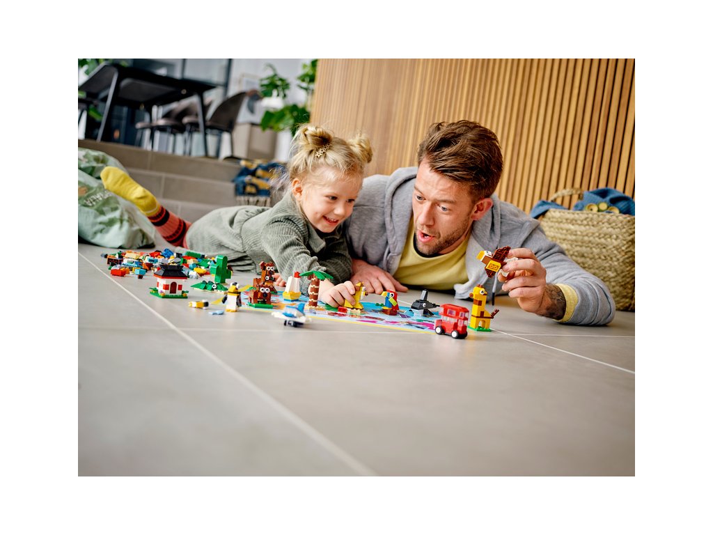Stavebnice Cesta kolem světa (11015) od LEGO® Classic obsahuje 15 modelů zvířat a věcí z míst po celé zeměkouli. Děti potěší i barevná nástěnná mapa vyobrazující původ každého z výtvorů. A díky ohromnému množství nejrůznějších LEGO dílků a řadě kostek navíc dostane dětská představivost prostor se skutečně vyřádit.