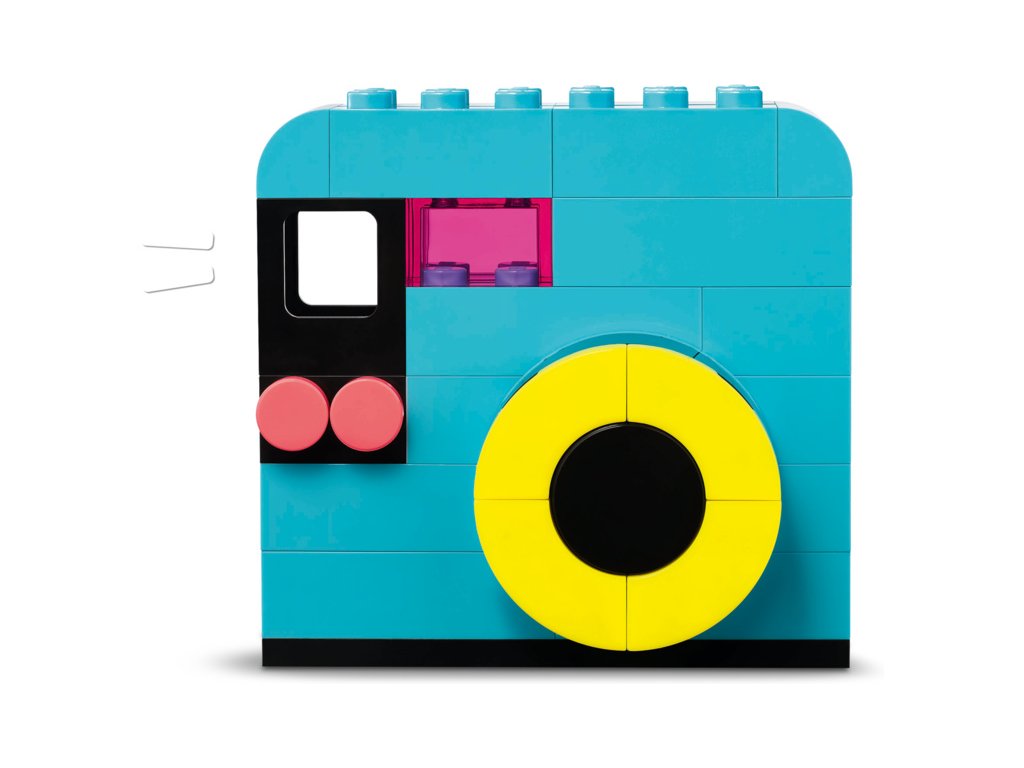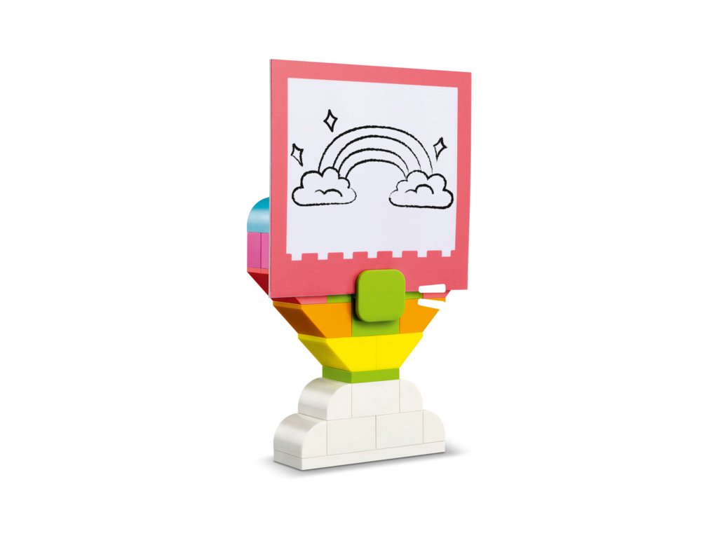 - Stavebnice plná představivosti – V návodu najdete inspirativní tipy na nové modely, jako je opice, zvýrazňovač, sněhulák, duhový dům, hovínko, včela, fotoaparát, narozeninový dort, kočka, kaktus, duhové srdce a pták