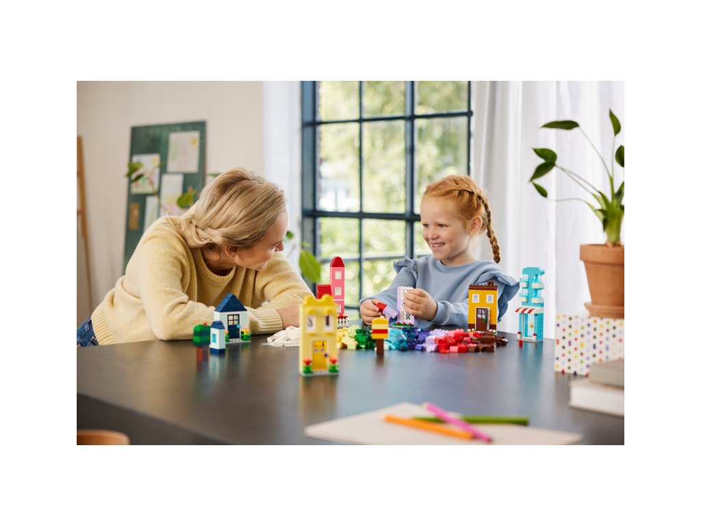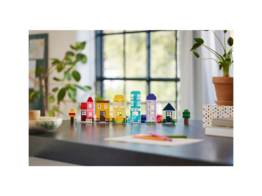 Stavebnice LEGO® Classic Tvořivé domečky obsahuje 6 útulných domečků různých barev, stylů, velikostí a tvarů a děti od 4 let si s ní užijí spoustu legrace při tvoření a upravování.