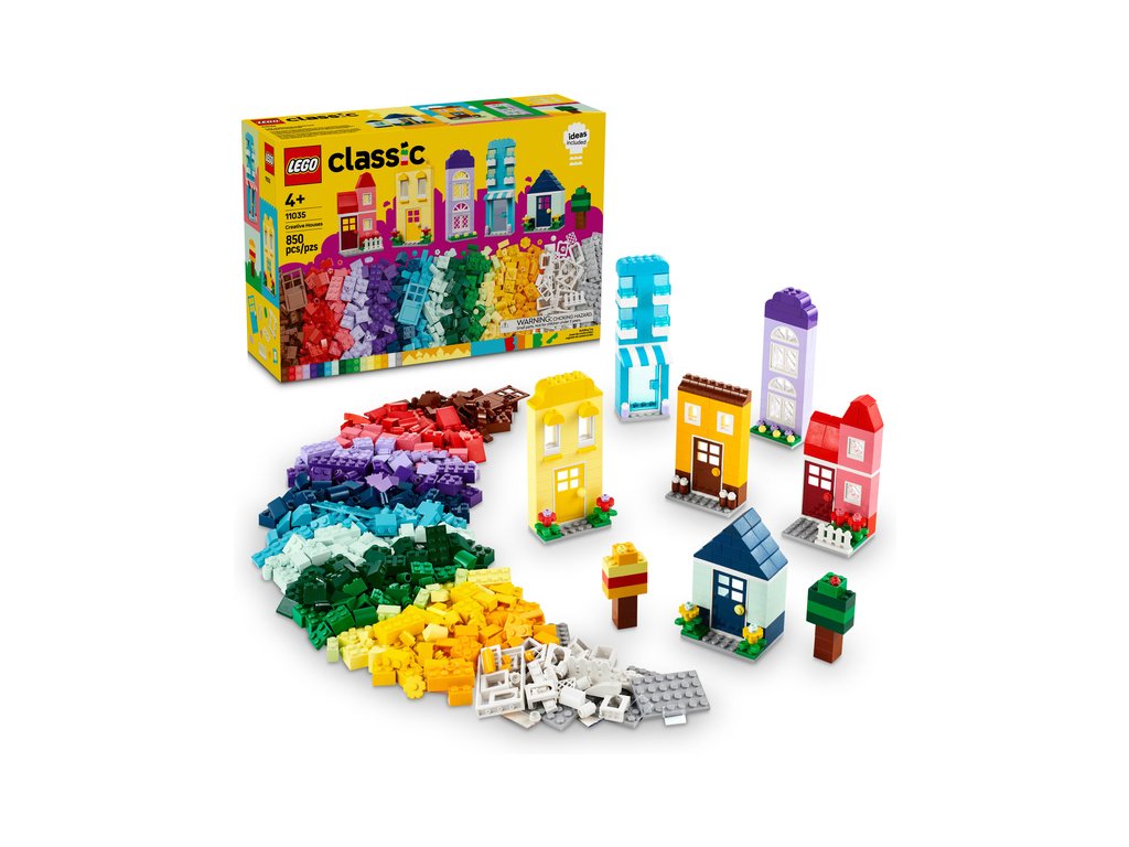 Inspirujte malé stavitele stavebnicí LEGO® Classic (11035) Tvořivé domečky. Děti mohou stavět, kombinovat a přizpůsobovat 6 barevných domečků LEGO s okny, dveřmi a doplňky. Stavebnice pomáhá rozvíjet kreativitu, soustředění a schopnosti řešit problémy a je vhodná pro děti od 4 let.