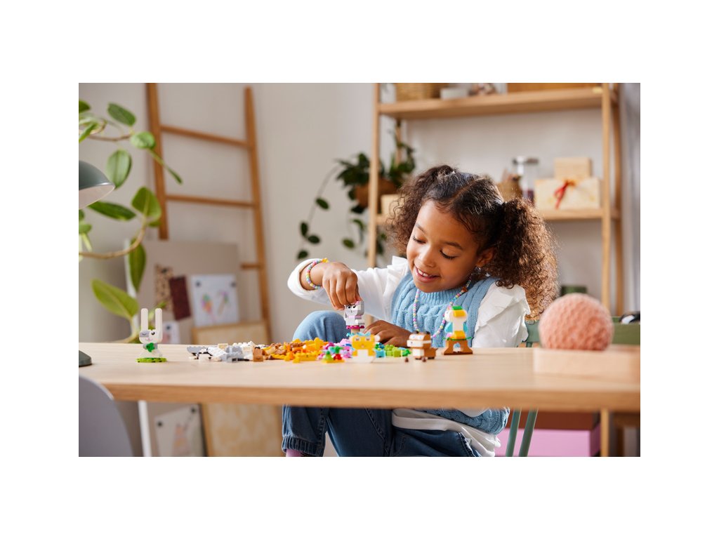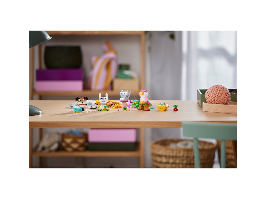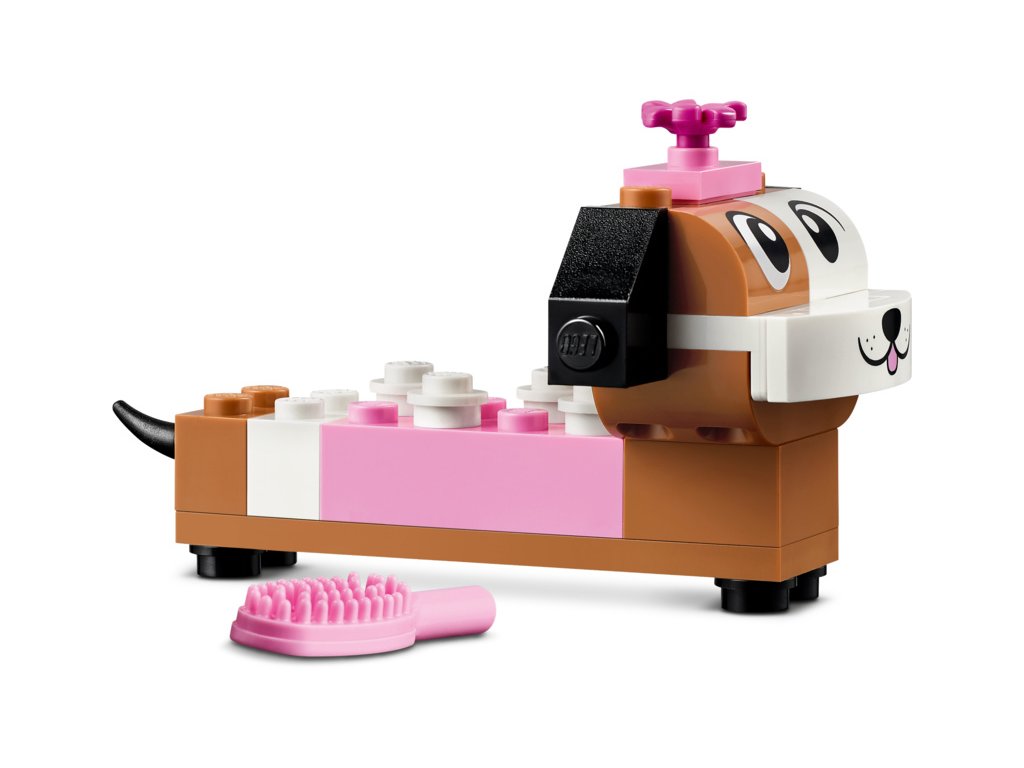 Součástí stavebnice je 450 kostek LEGO, včetně speciálních dílků s očima a ústy a podrobným návodem na stavění. Děti si postaví model psa s kostí, kočku na škrabadle, křečka s jablkem, králíka s mrkví a ptáka na bidýlku. Díky návrhům s alternativními barvami, tvary a funkcemi si děti vyzkouší přestavět mazlíčky do zcela nových podob. Sada pomáhá rozvíjet kreativní dovednosti malých stavitelů, kteří si zkusí poskládat vlastní nápady. Součástí je návod s 10 tipy na stavění, které podnítí kreativní tvoření podle vlastní fantazie.