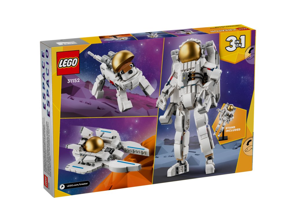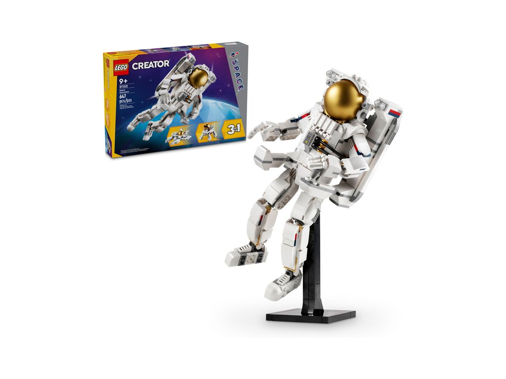 - 3 vesmírné hračky LEGO® v 1 krabici – Děti od 9 let, které milují vesmír, si se stavebnicí LEGO Creator 3 v 1 Astronaut postaví a přestaví 3 sady modelů ze stejných kostek